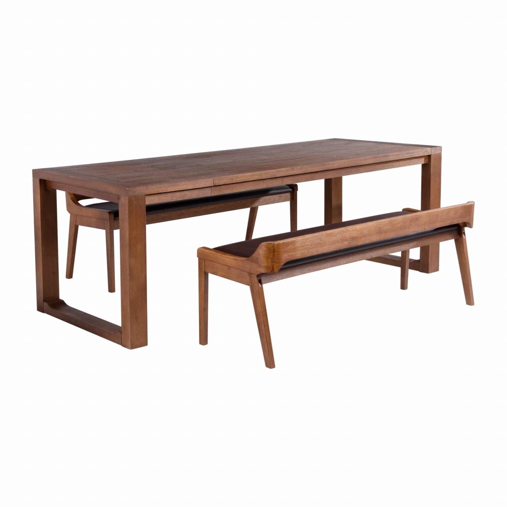 Add the Boraam 3-piece Rasmus Dining Set to your living or dining room. This set includes a dining table and two dining benches. The table and benches are constructed with solid rubberwood. The benches are also upholstered with padded faux leather. This 3-piece set is available in our new chestnut wire-brush finish. The dining table has a drop leaf extension that is included. This set is ready for assembly upon delivery with all tools and hardware included. The chestnut feel will bring a warm energy to your home.