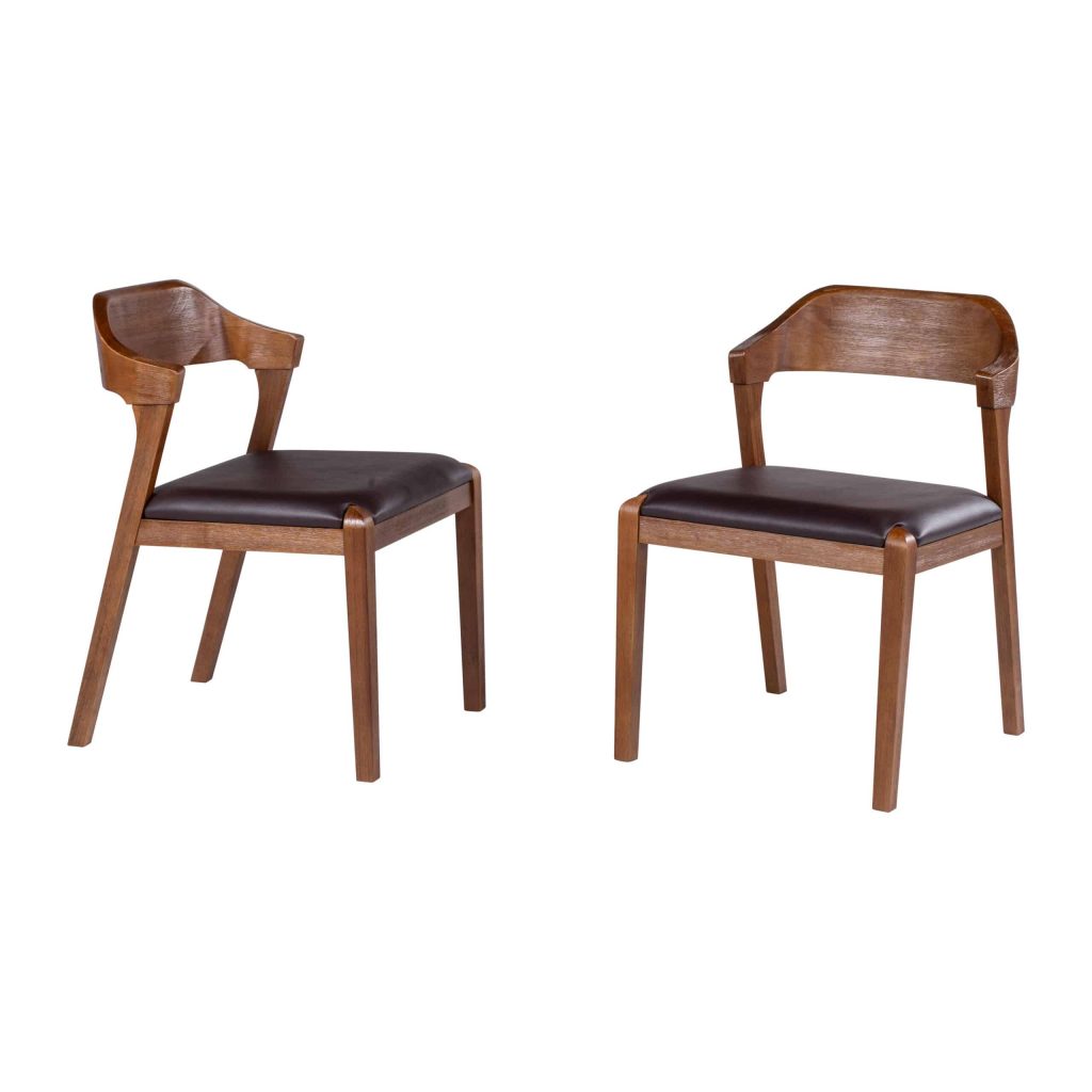 The Rasmus Dining Side Chair’s handsome good looks and comfortable design make it more tempting than ever to linger over meals with friends and family. This dining chair is made from Rubberwood with a Chestnut Wire-Brush Finish. The curving seat back molds to the shape of your body, while the padded seat provides a cushion against the wood frame. The seat is upholstered in faux leather upholstery. The Rasmus Dining Side Chairs comes as a set of 2. For a complete dining set, look to the Rasmus Dining Table and Rasmus Dining Bench. Assembly is easy: all tools and hardware come included for easy setup.