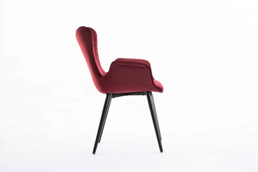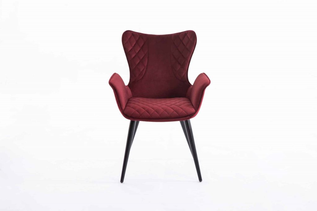 This arm chair is constructed with metal legs and fabric seating. It has full padded seating with arms for maximum comfort. The red arm chairs comes in a set of 2. This product comes out of China. *Product weight is for a single chair*