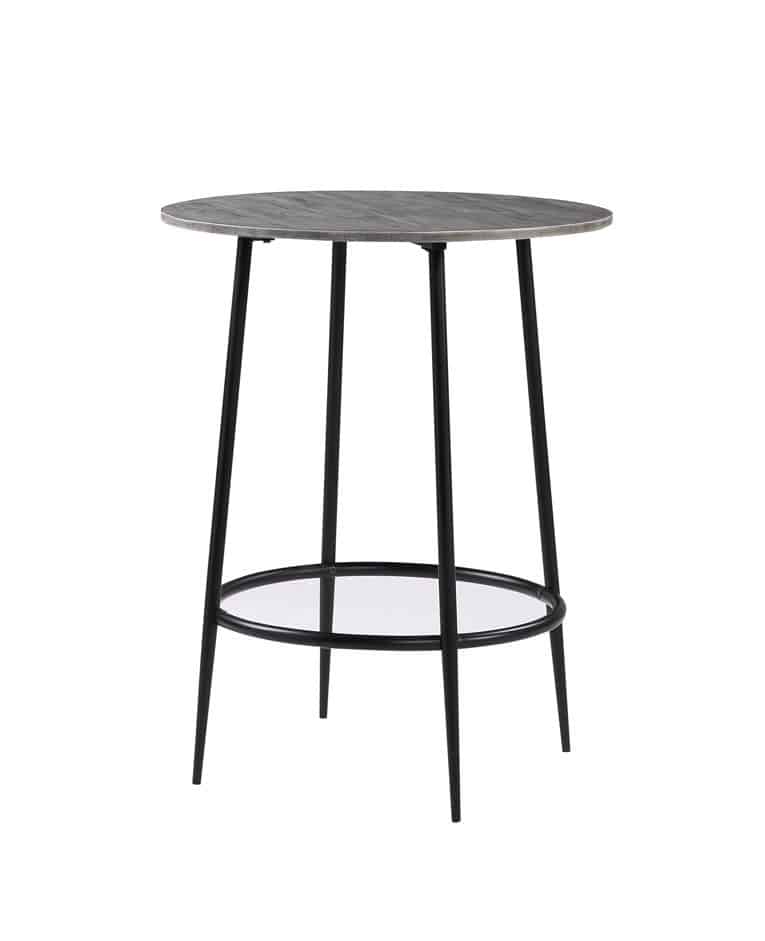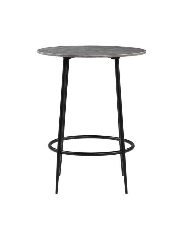 This pub table features a Acacia wood grey colored top as well as a black colored metal frame. It is a perfect entertaining option for your home. This item has a foot rest built on the the legs of the table for comfort. This item comes from Vietnam.
