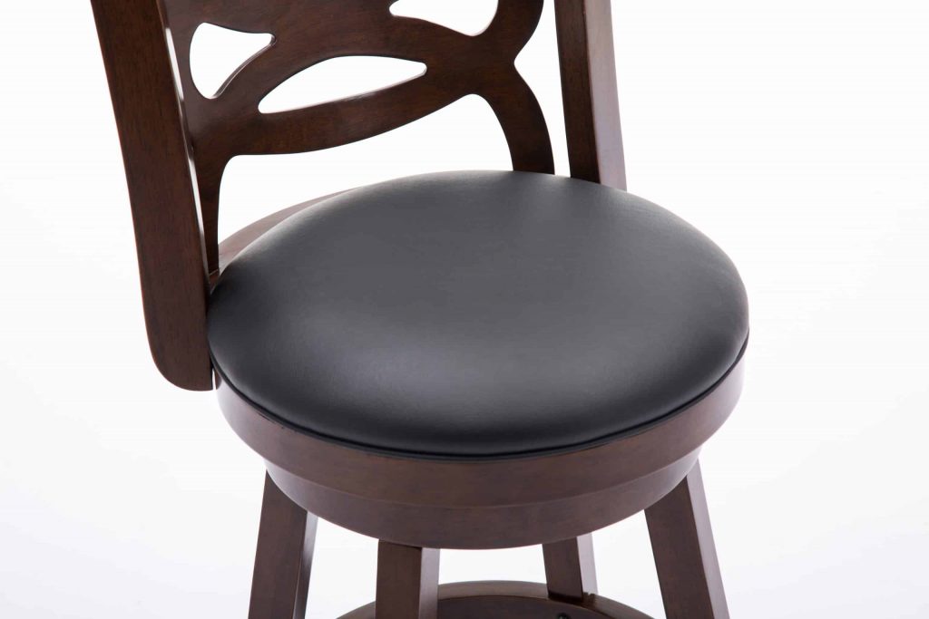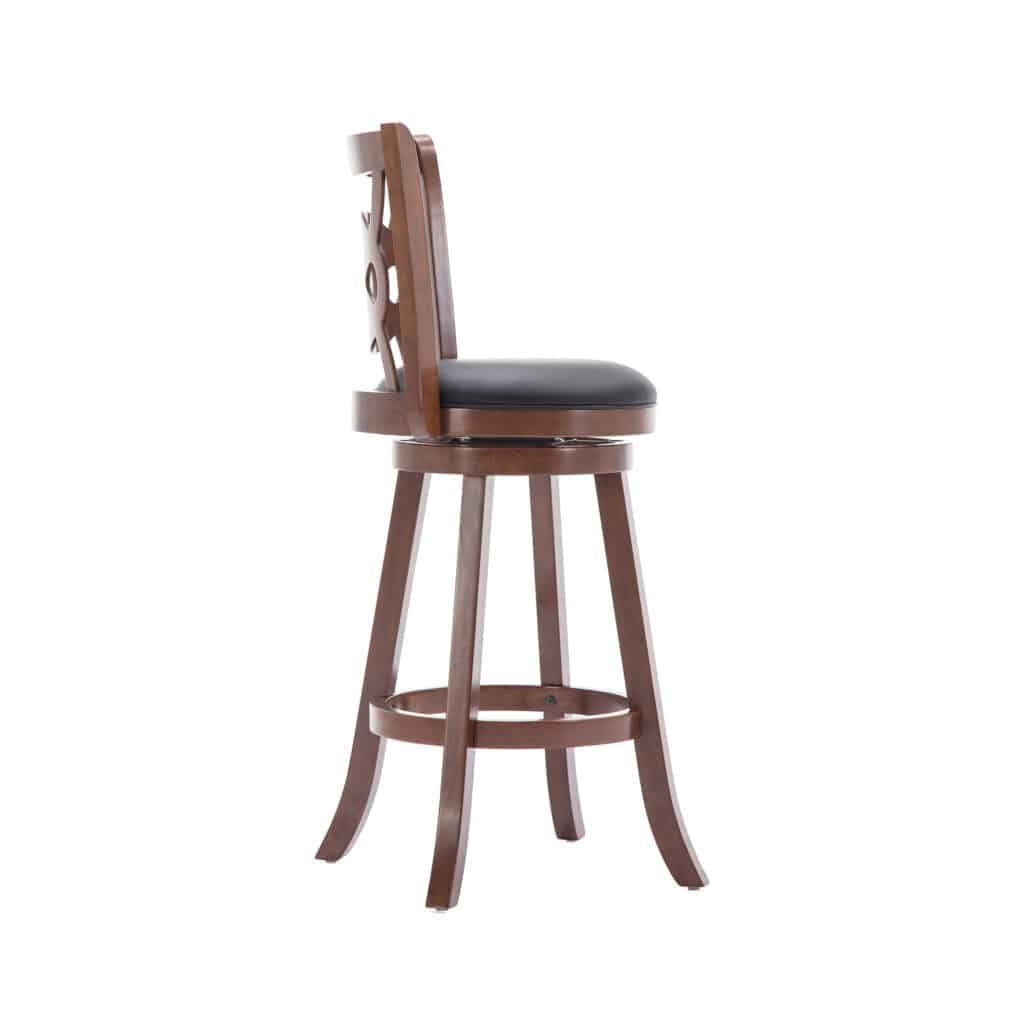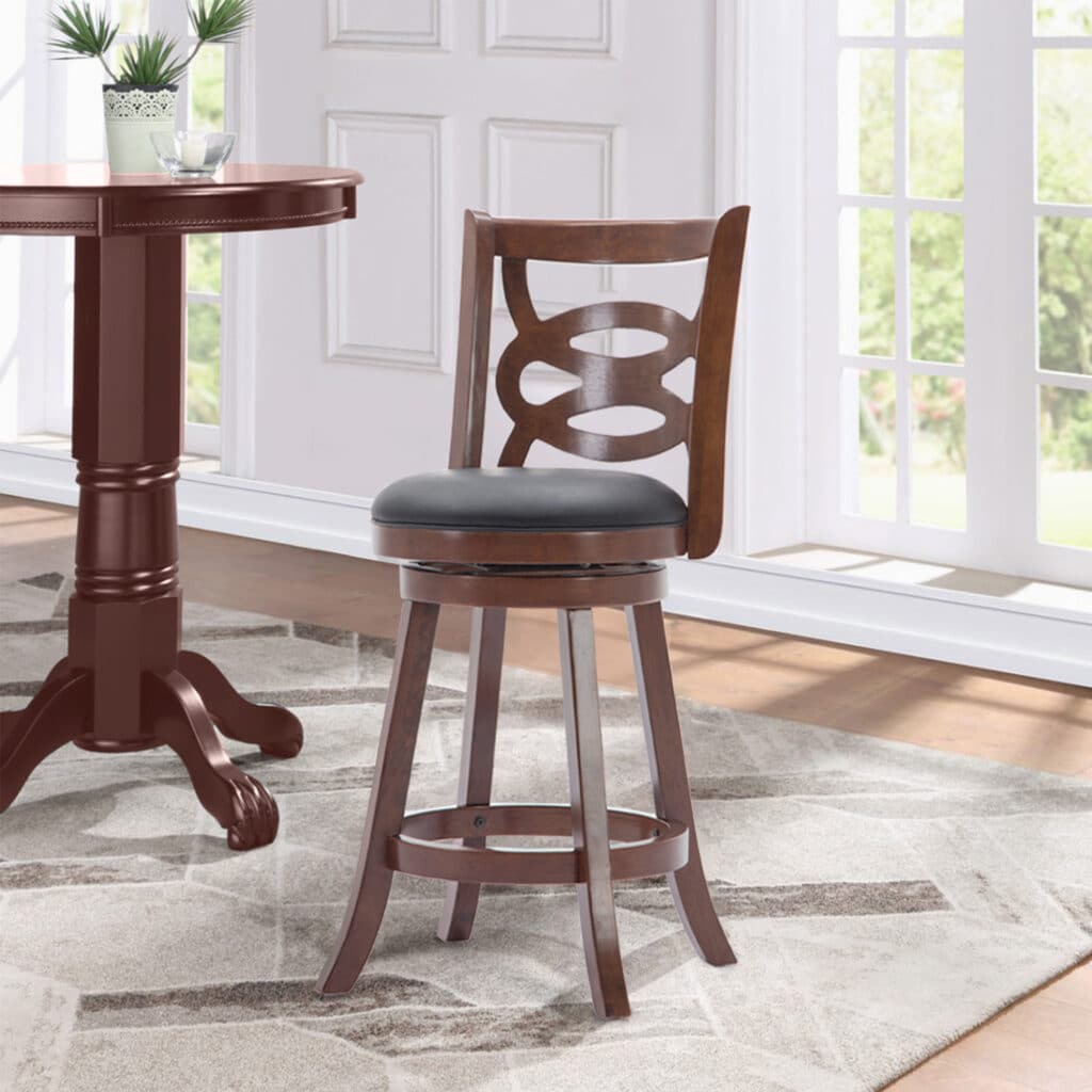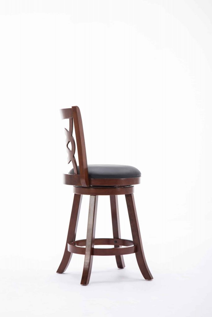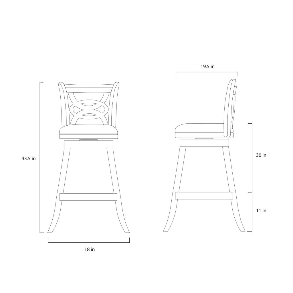 The Boraam Seina Swivel Stool brings home style, comfort, and stability in spades. This traditional stool features a design twist, with interlocking circles on the open backrest creating visual interest. It fits into any traditional or contemporary setting. The stool even comes in color and height options for additional versatility. Craftsmanship meets comfort with the steel ball-bearing swivel plate that frees up your movement and allows you to turn in a full 360-degree range of motion. Leatherette seat upholstery cleans easily with a damp cloth, hiding the high-density foam seat cushion that offers even more comfort. Finally, a full-ring footrest and flared legs provide enhanced stability, along with a double seat apron that adds extra support. Whether you’re using the stool when entertaining guests or enjoying it when you unwind solo, this stool is built to last.