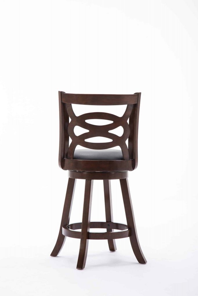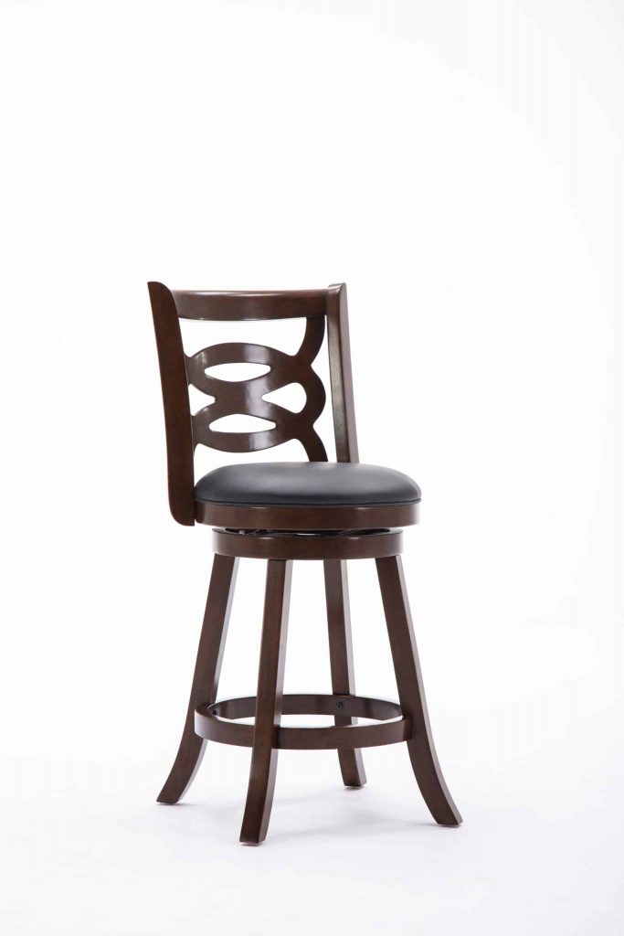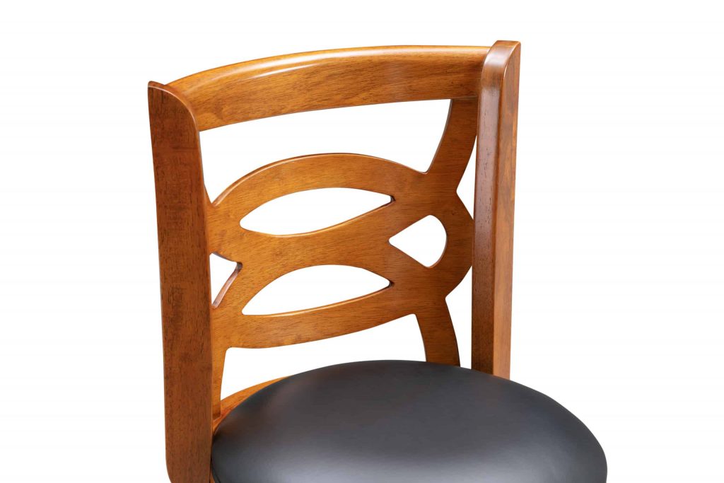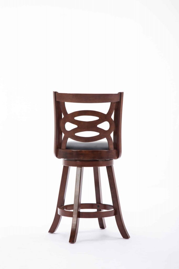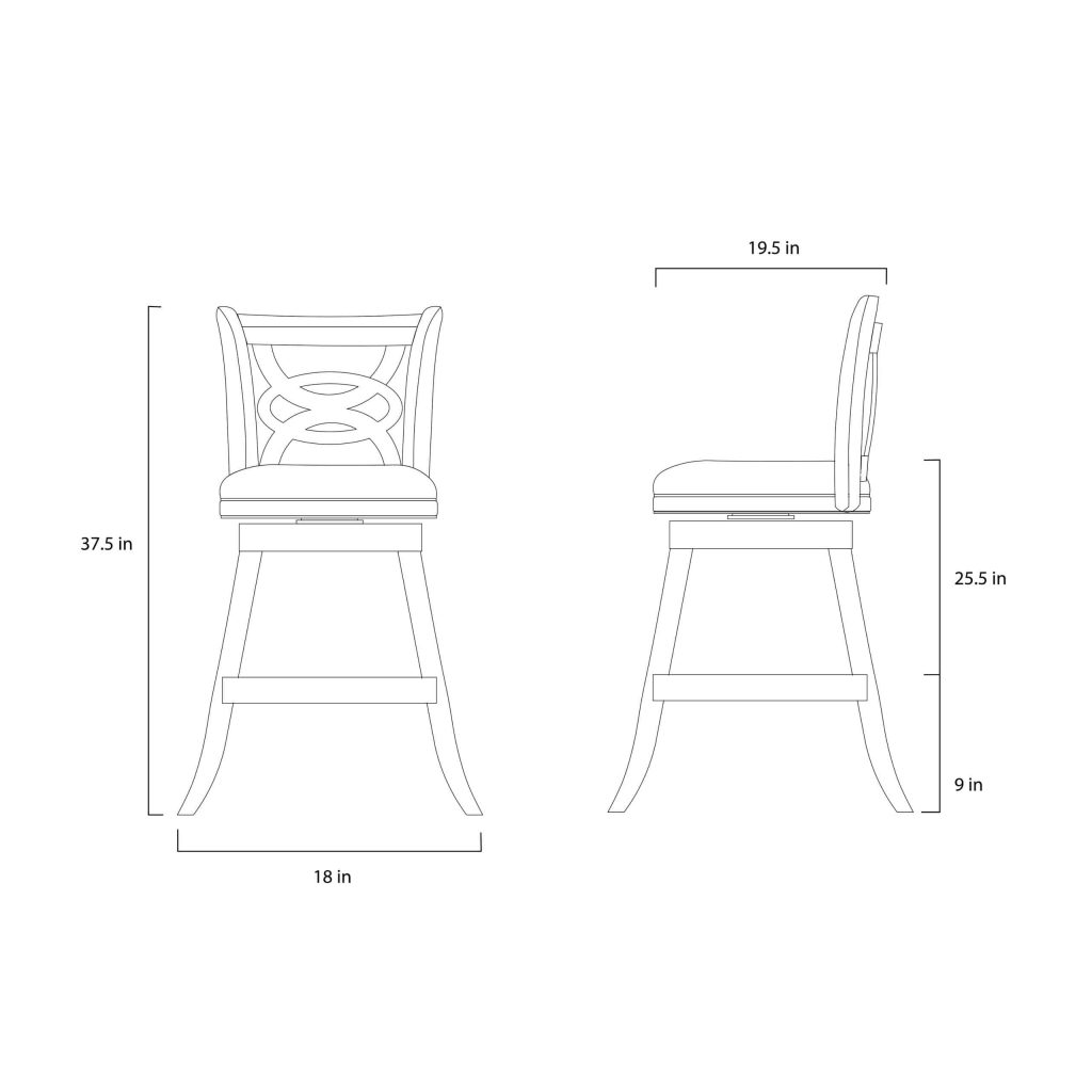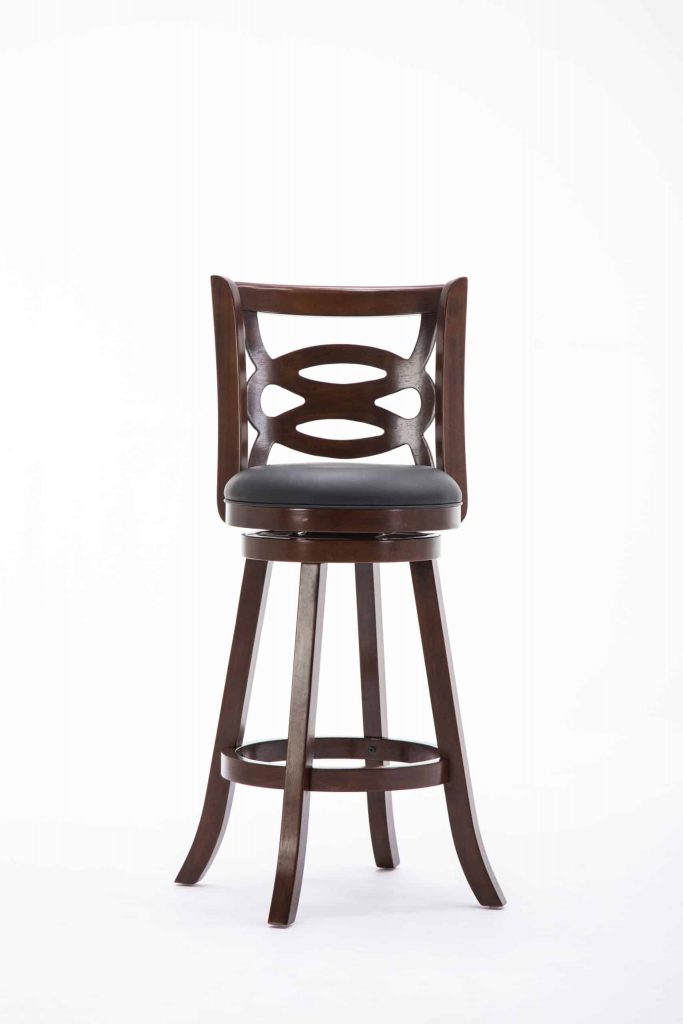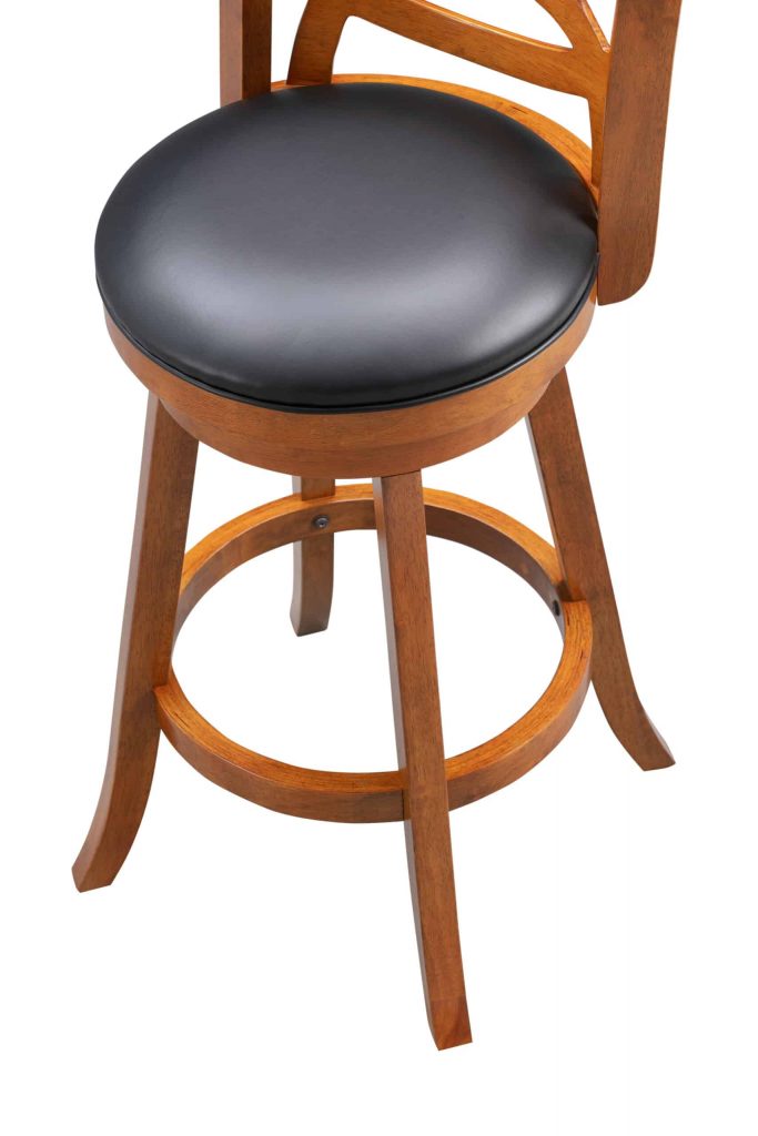 The Boraam Seina Swivel Stool brings home style, comfort, and stability in spades. This traditional stool features a design twist, with interlocking circles on the open backrest creating visual interest. It fits into any traditional or contemporary setting. The stool even comes in color and height options for additional versatility. Craftsmanship meets comfort with the steel ball-bearing swivel plate that frees up your movement and allows you to turn in a full 360-degree range of motion. Leatherette seat upholstery cleans easily with a damp cloth, hiding the high-density foam seat cushion that offers even more comfort. Finally, a full-ring footrest and flared legs provide enhanced stability, along with a double seat apron that adds extra support. Whether you’re using the stool when entertaining guests or enjoying it when you unwind solo, this stool is built to last.