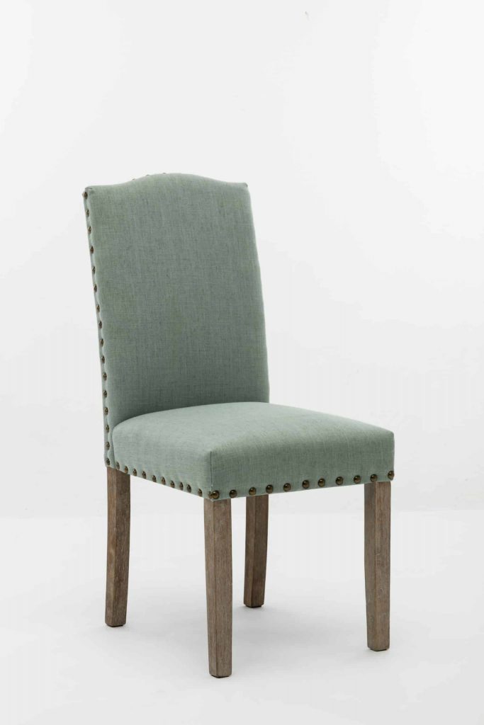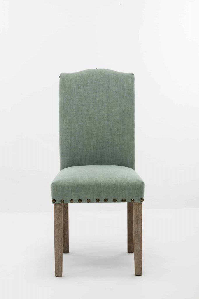 The Shawna Dining Chair is the solution to blending Traditional style with a modern accent. The piece is an ideal option for any dining room. The neutral mint color and weathered, light brown legs make this chair a perfect match for a variety of dining tables and will leave your guests in awe. Comes in a set of 2. *Product weight is for a single chair*