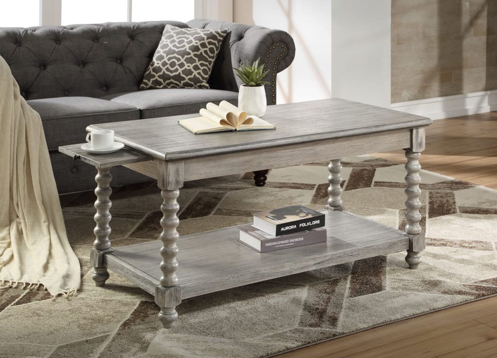 The newest addition to the Sonoma family is the Sonoma Coffee Table. It is constructed with MDF Veneer and Acacia Wood. Bottom shelf and table top are provided to store and place your magazines or home decor. The feature that will separate this from most coffee tables is the pull out board on the side of the table, mainly used to place your beverage. The Sonoma Coffee Table is available in our storm gray wire-brush finish.