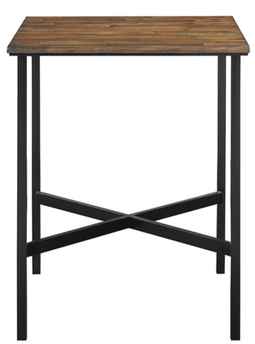 This square pub table has a Acacia top with oil painting finish, as well as a Black metal frame. It is a perfect table for any entertaining space and will surely fit in great with our matching folding stools. This item comes in pub height. This item comes out of Vietnam.