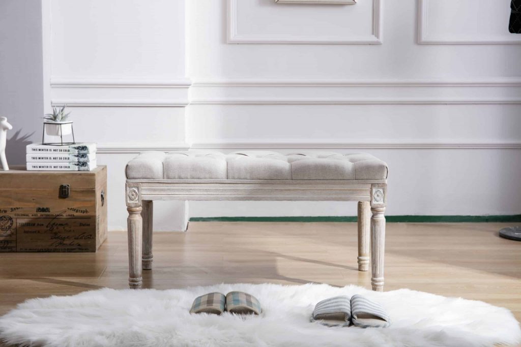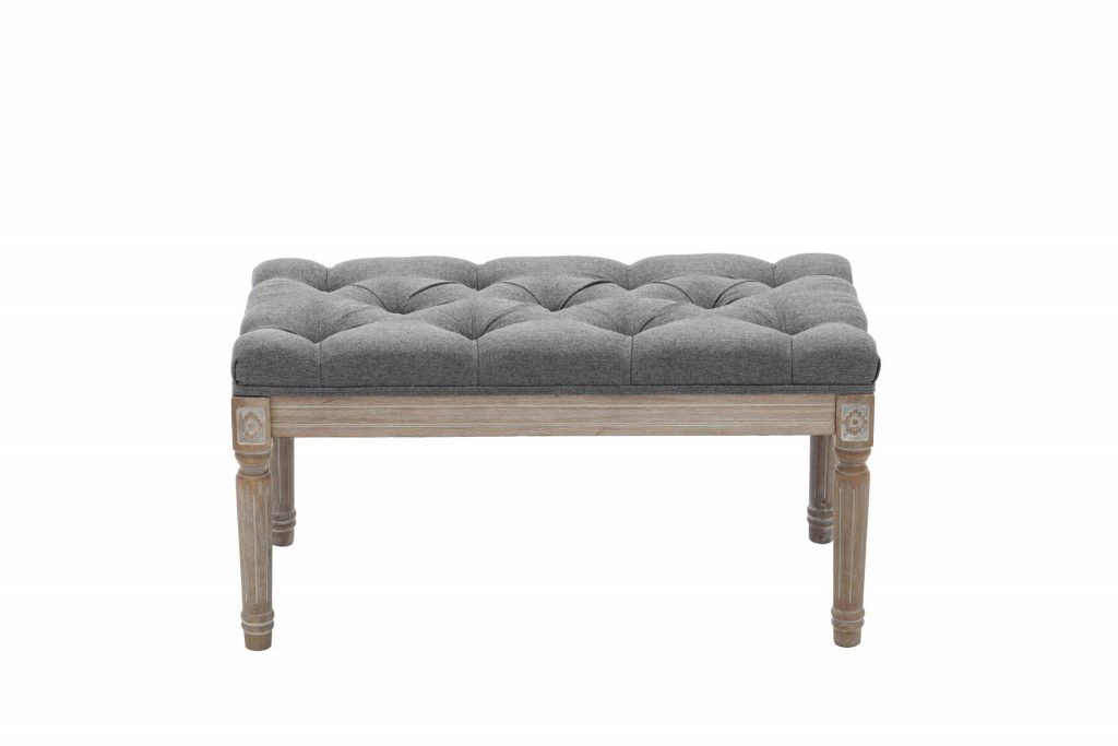 Add a tufted bench into your hall way or living room. Beautifully sculpted, this bench is available with two finishes; gray and taupe. The seats are tufted and padded. The bases are in a natural wood finish. Constructed with rubber wood, PU sponge, and polyester. Some assembly is required.