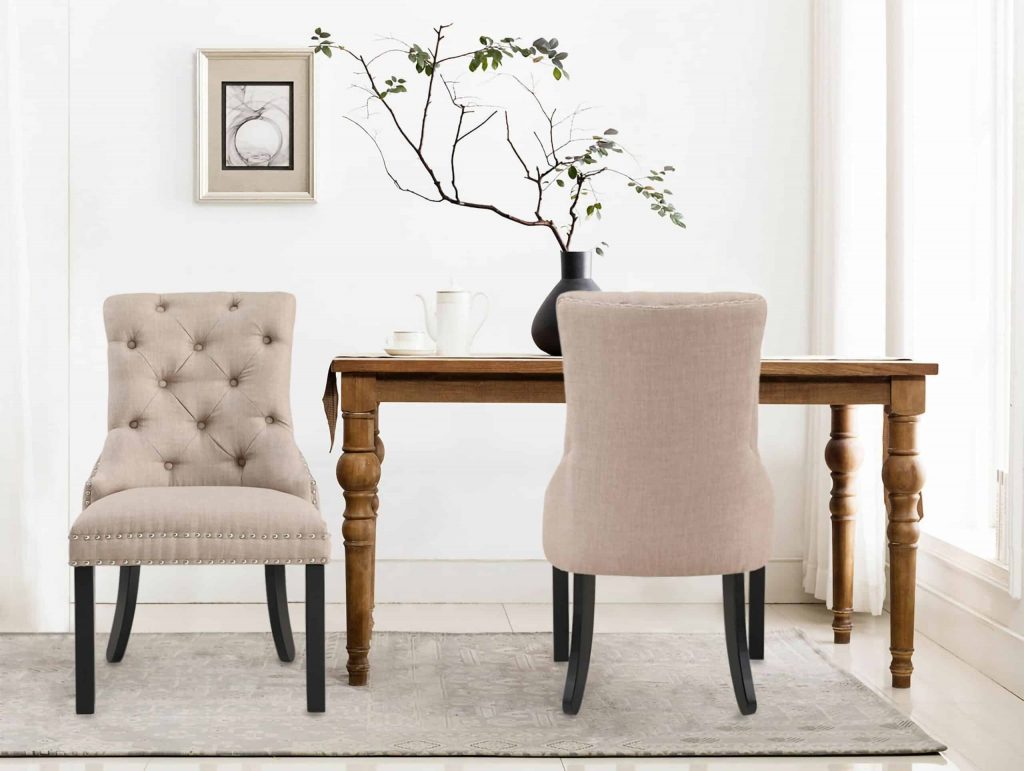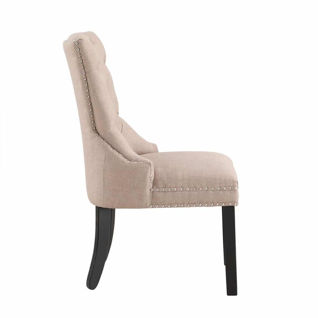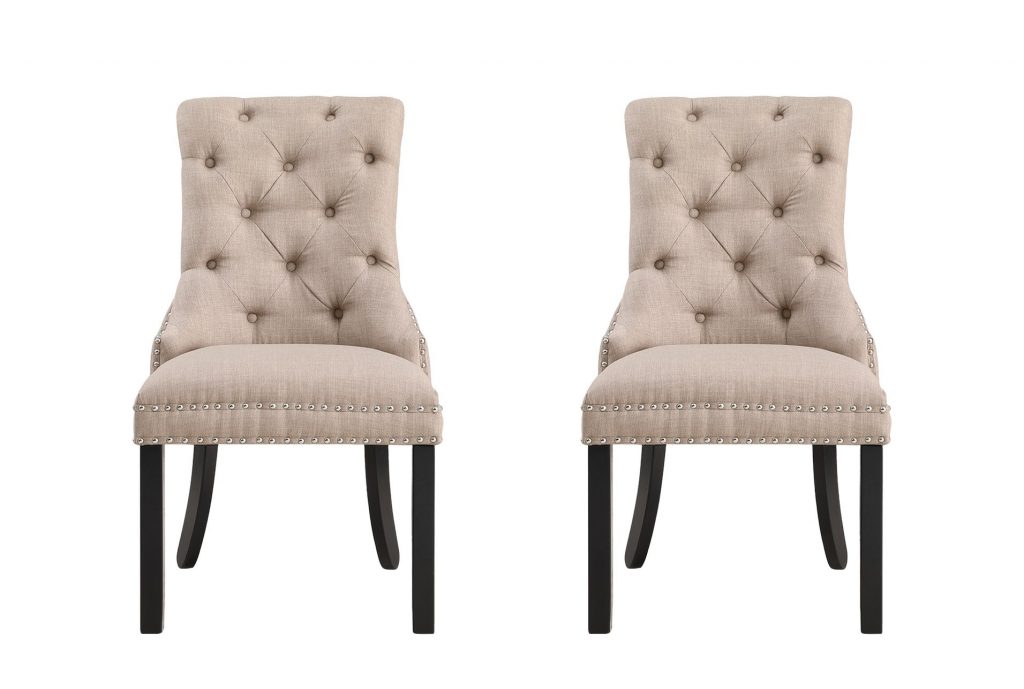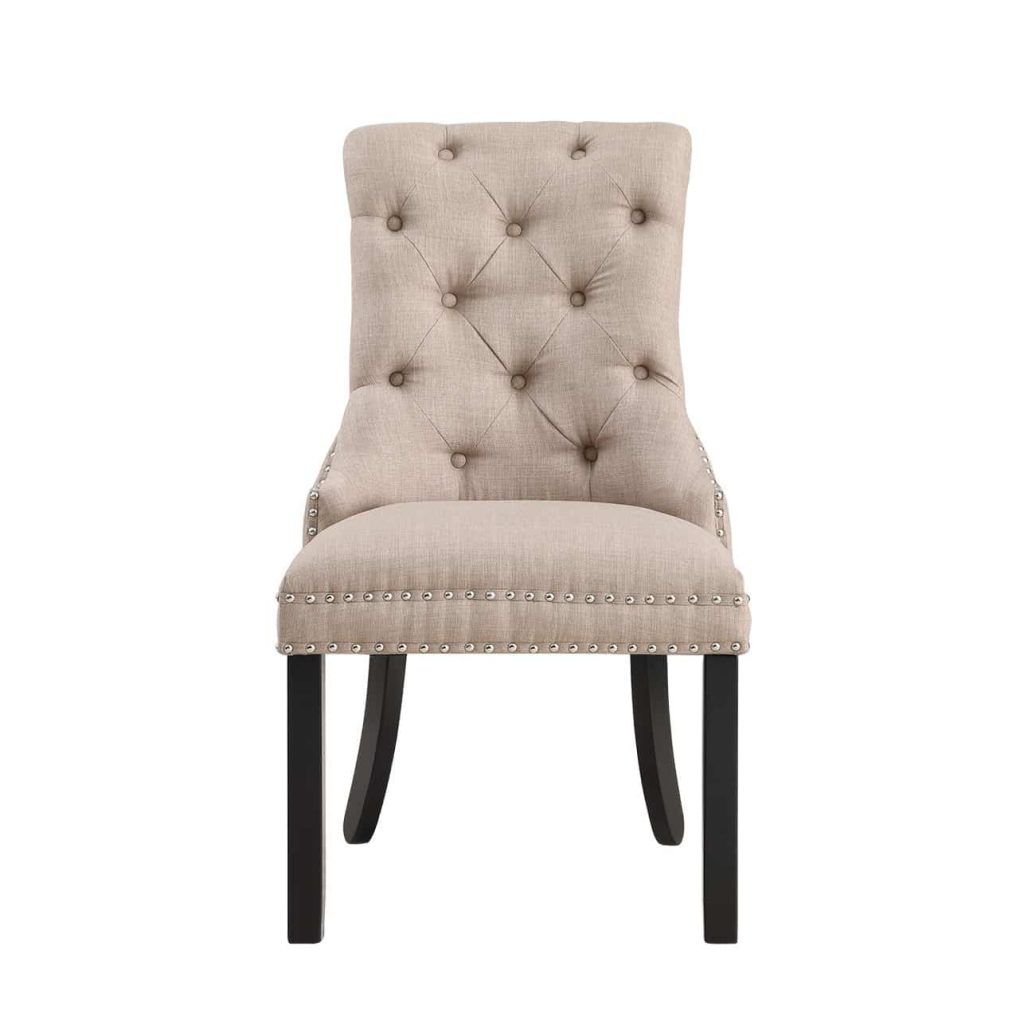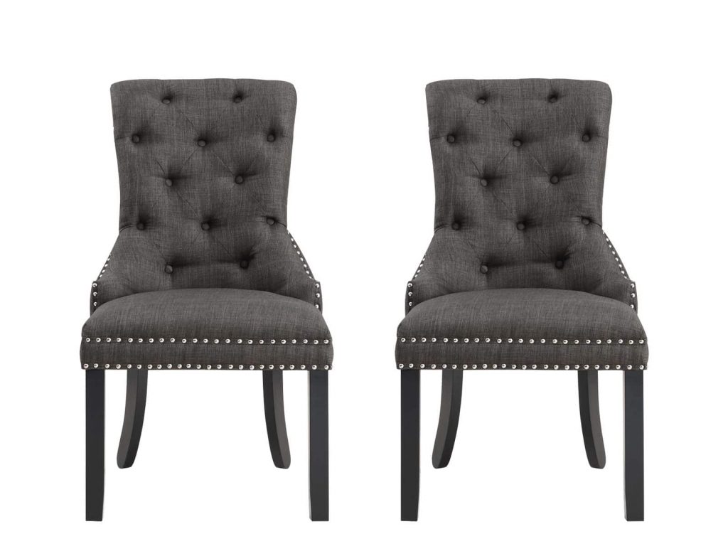 You can’t go wrong with the Tufted Dining Chair at your table. Upholstered and lightly padded, this chair creates a cozy and inviting atmosphere for intimate family meals and larger social gatherings. Thanks to the comfortable design of each chair, guests will linger over their last bite. Chairs feature decorative button tufting and nailhead trim. Choose from Beige or Dark Gray color options.