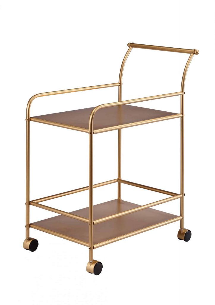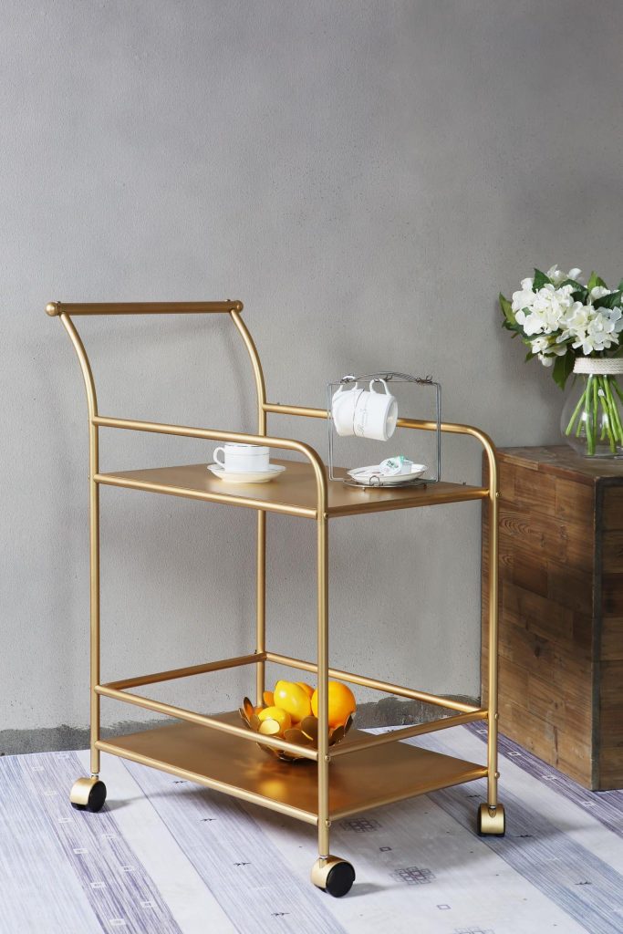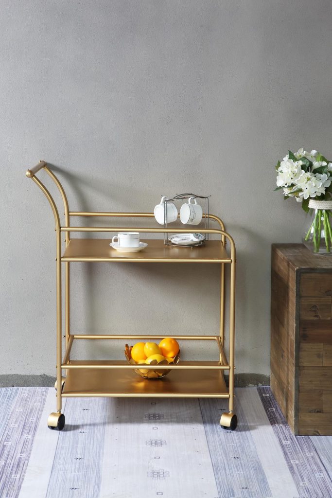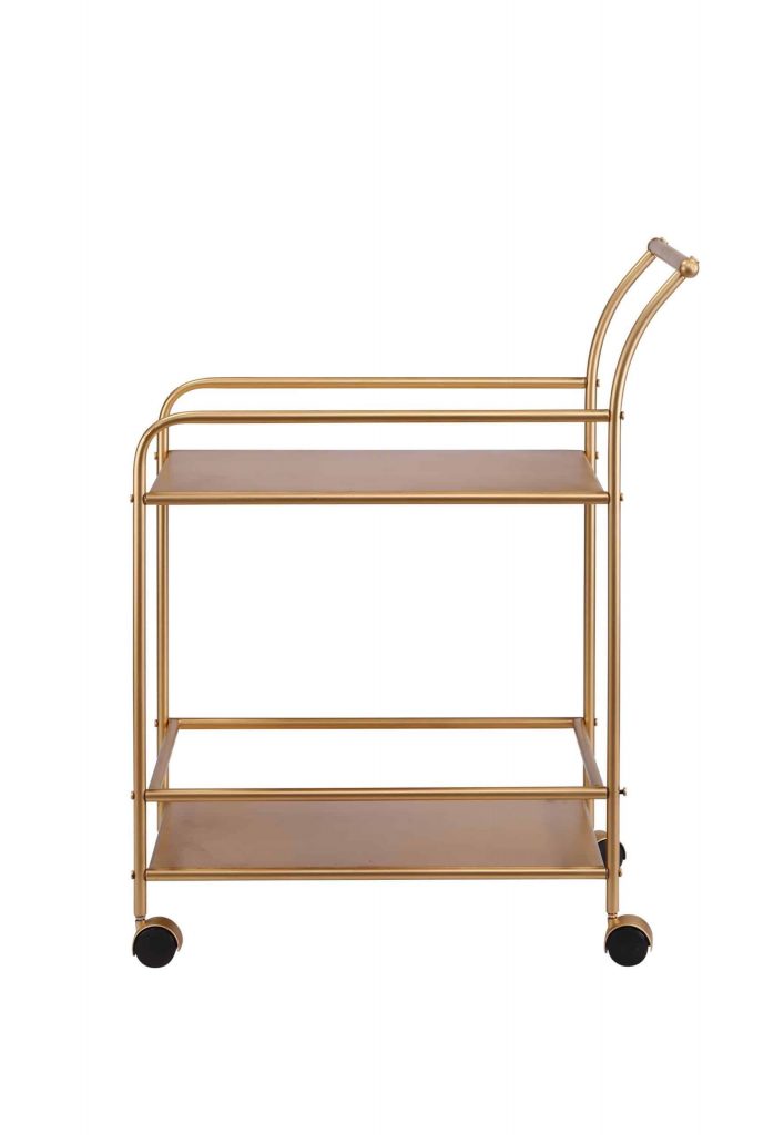 The Bar Cart is going to come in two types, both with different materials. The first will have iron piping and gold plastic shelving. The second will have galvanized pipe with gold plastic shelving. Both are ready to assemble upon delivery. The all metal cart can be used for indoor or outdoor use. Both come out of China.