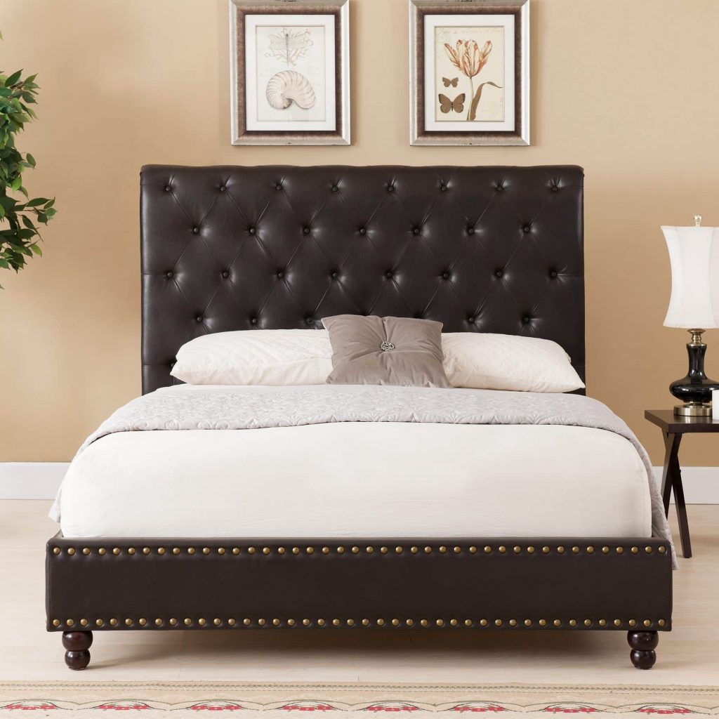 When your bedroom craves classic style, try the Boraam Wentworth Bed Set. This timeless, handsome piece features high-quality faux leather upholstery with a tall button-tufted headboard. Nailhead trim lines the headboard and footboard for a stylish yet traditional look. Classic bun feet complete the look. Simply choose from available size options.