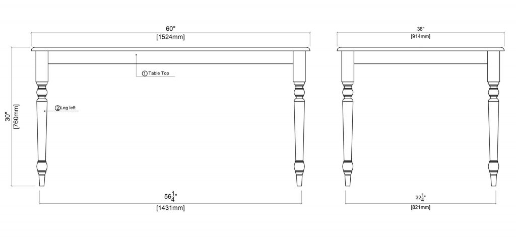 - Never worry about going out of style—this wooden dining table transcends the test of time with its two-tone finish, clean-lined shape, and turned legs