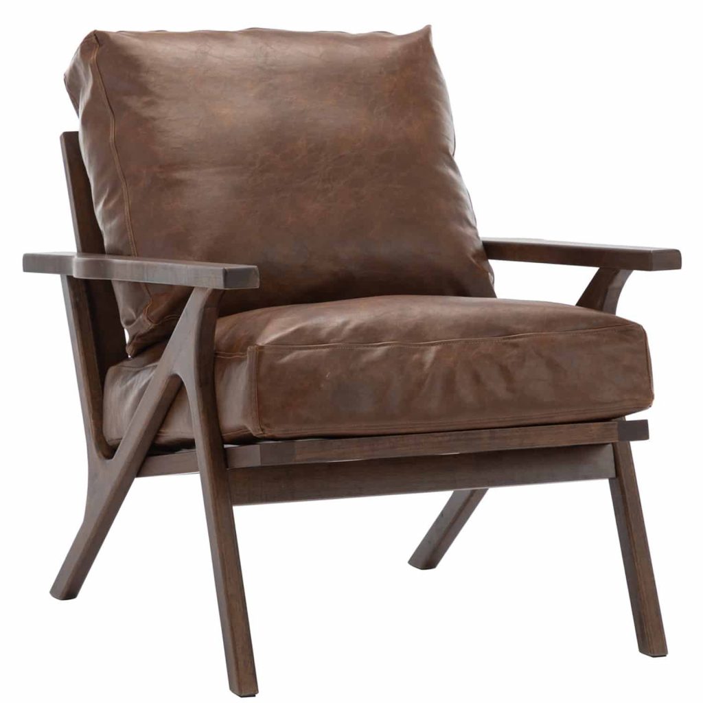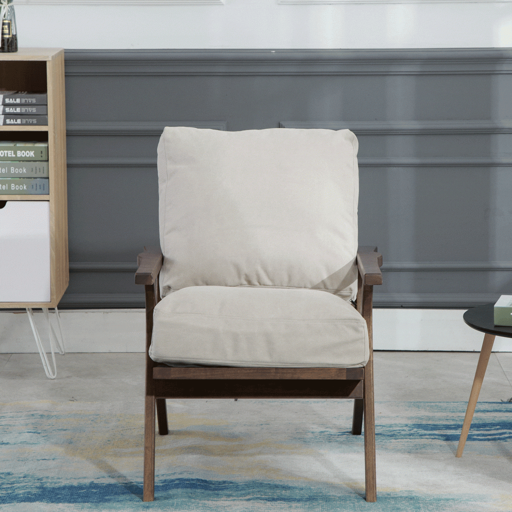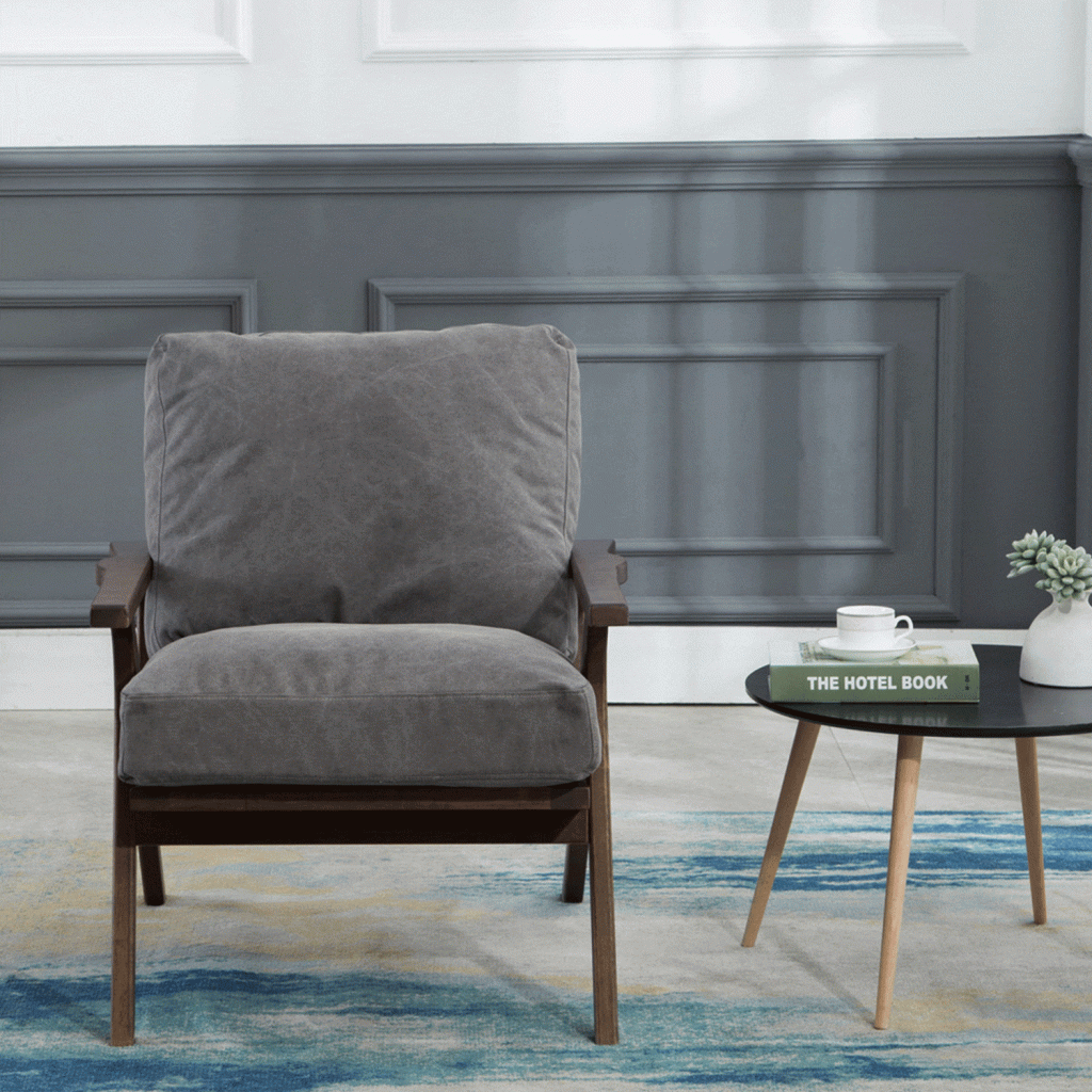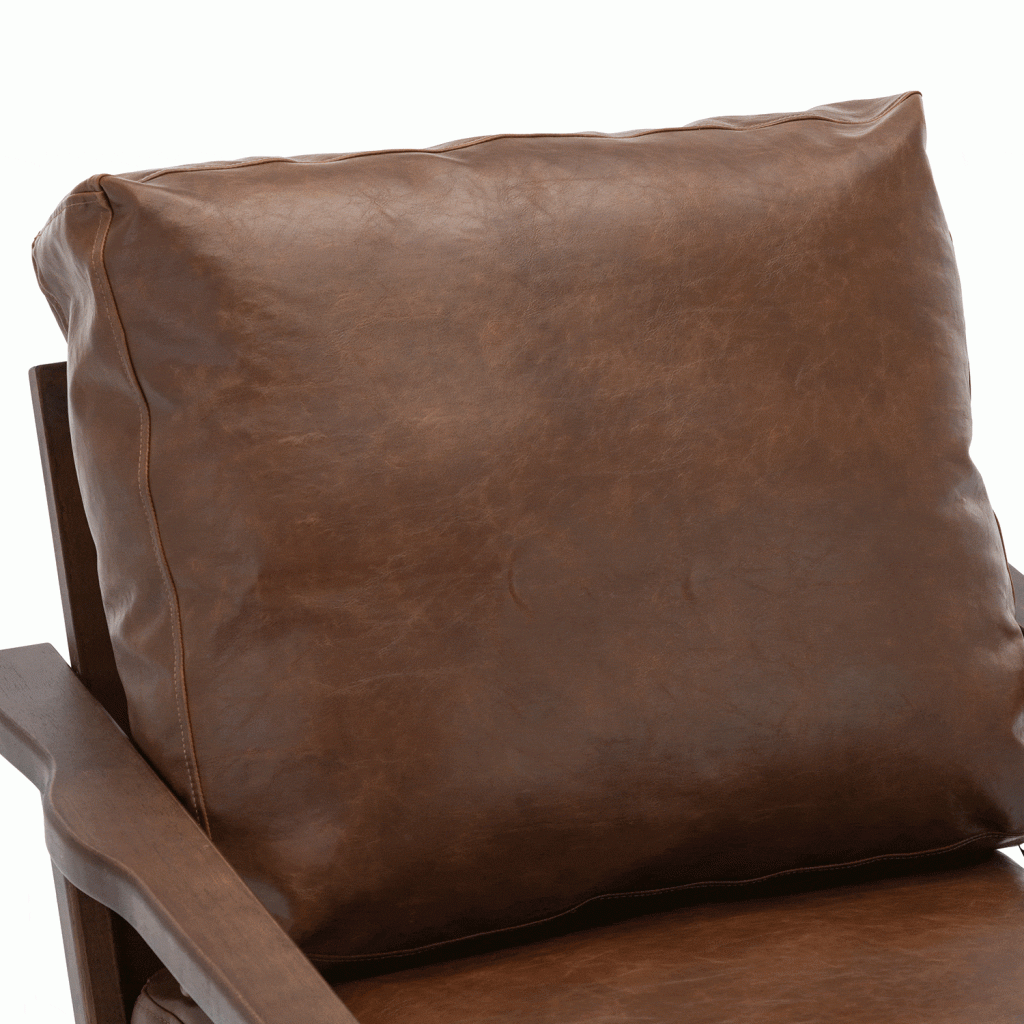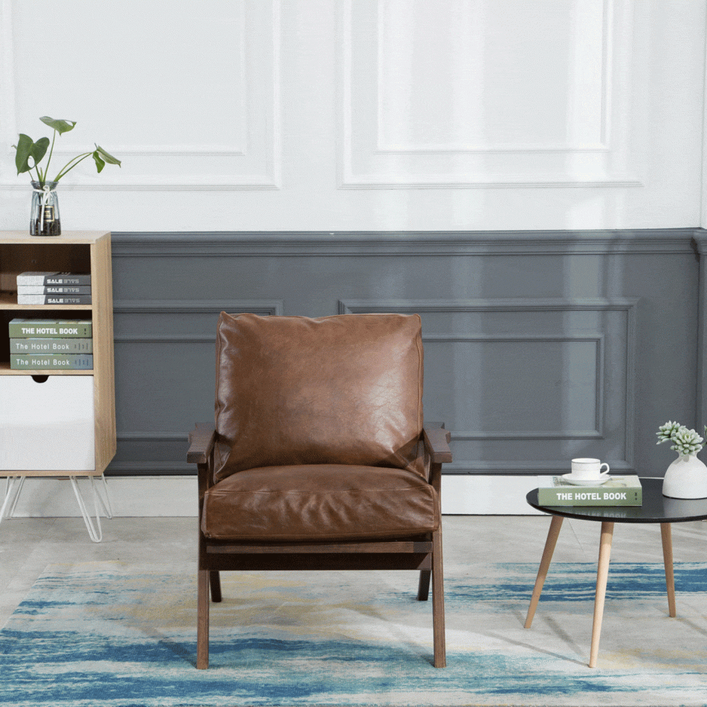 Wood arm chair that would be a perfect addition into any living room or bedroom environment. The seat and backrest are available in three finishes; brown PU, gray, and taupe. The arm chair is constructed rubber wood, PU sponge, and polyester. Some assembly required