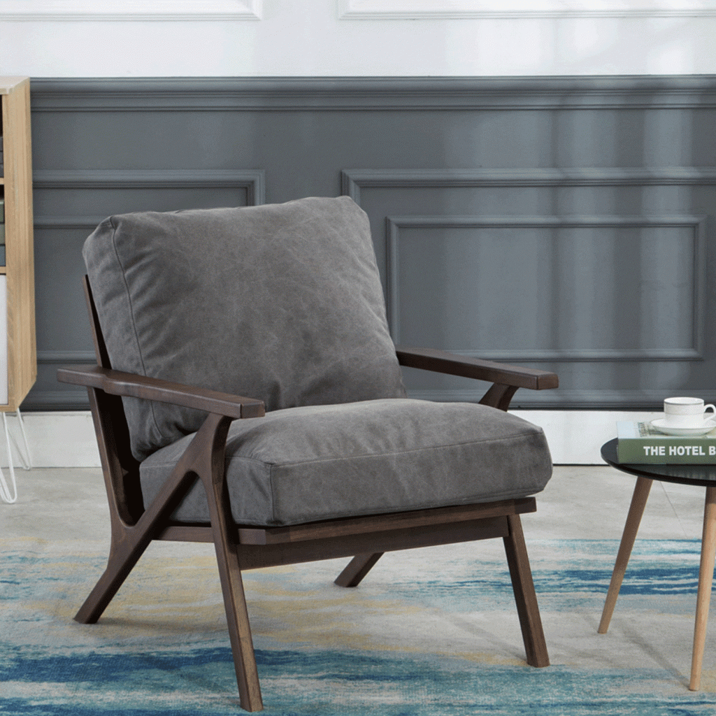 - Constructed with rubber wood, PU sponge, and polyester