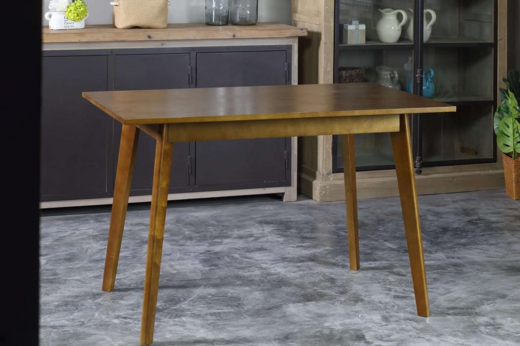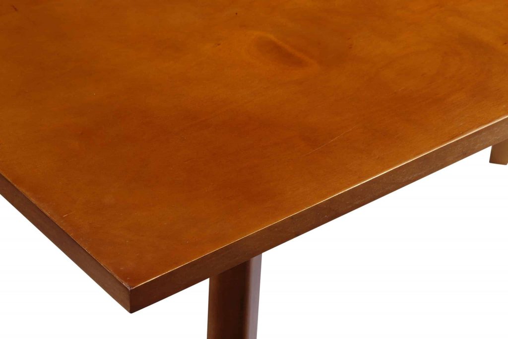 This dining table is constructed with a birch wood and MDF. The finish on this item is walnut. It is for indoor use only. Ready to assemble upon delivery. Comes out of China.