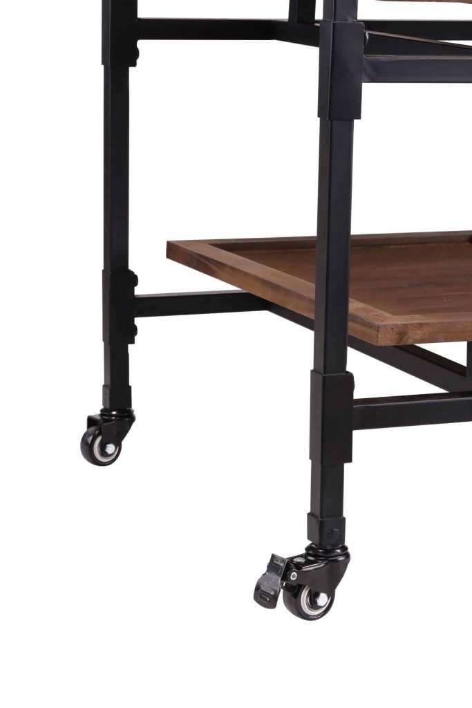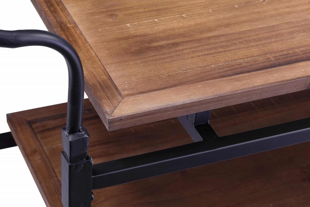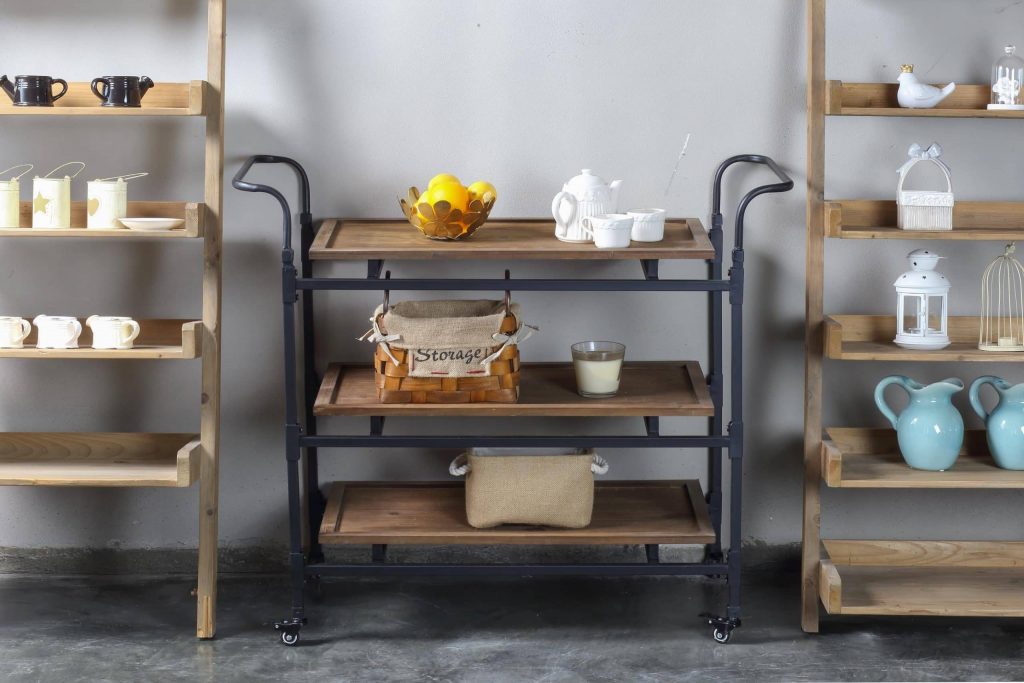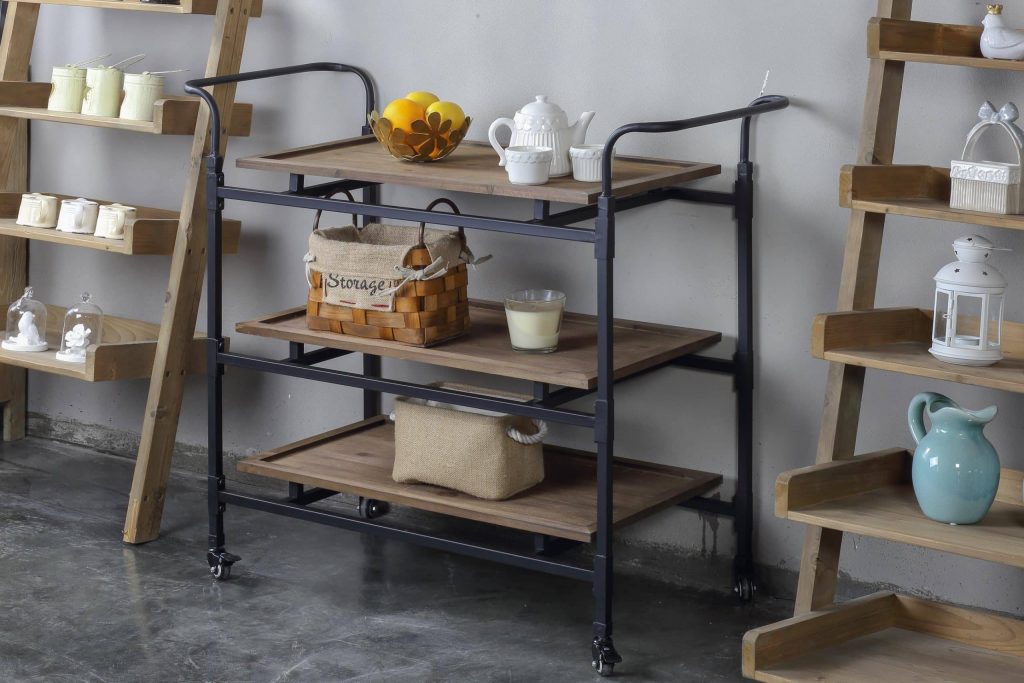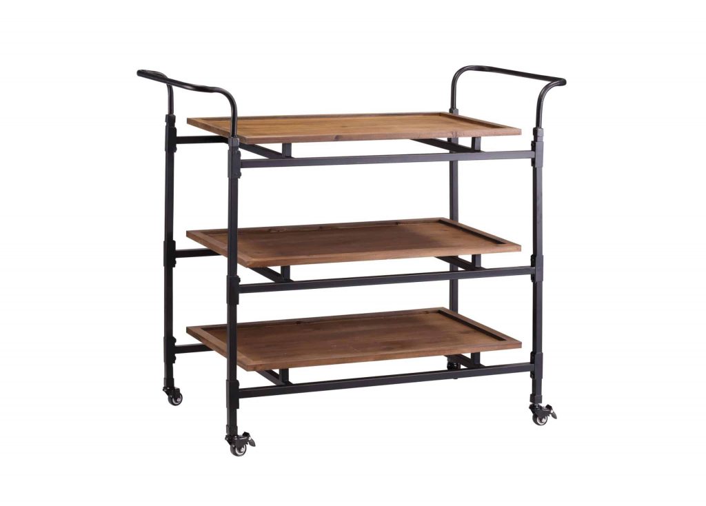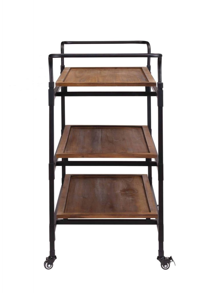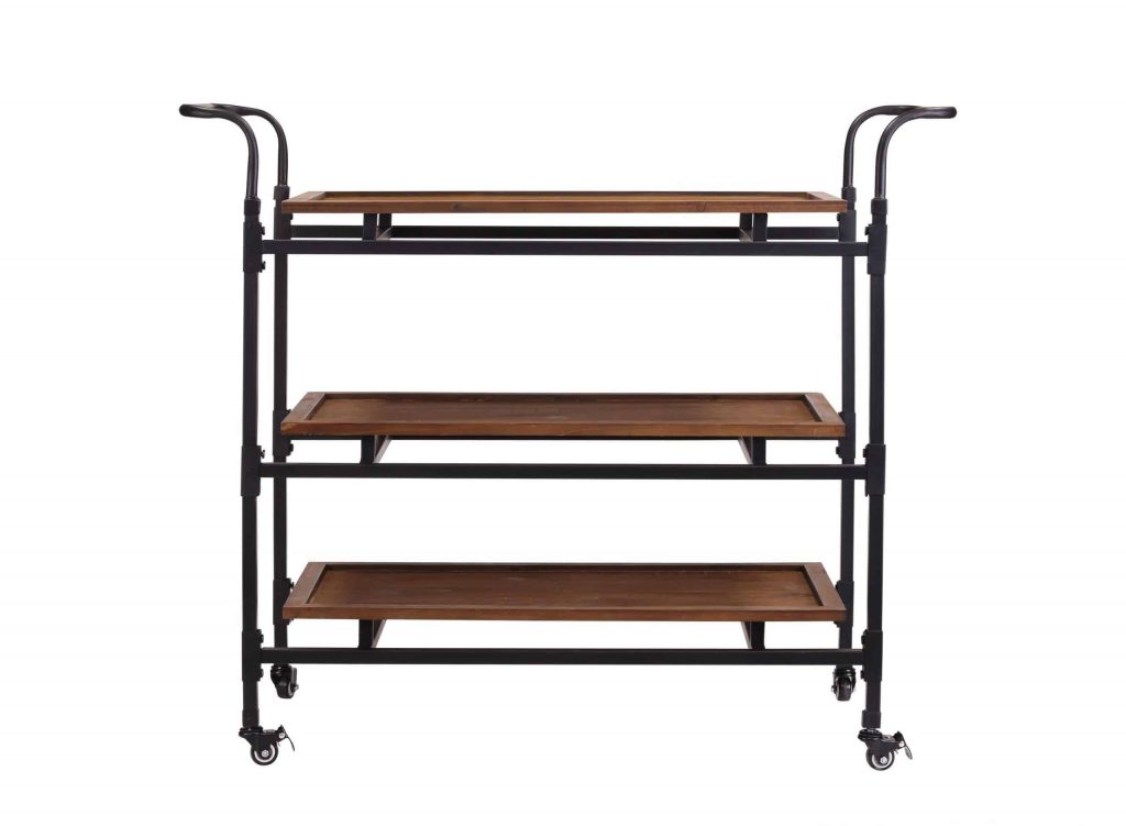 This bar cart will be constructed in two different ways. The first is with a galvanized pip frame and fir wood shelving. The second is an iron frame with fir wood shelving. The finish for this item will be natural wood & black frame. Three available shelves. Four locking casters. Will be ready to assemble upon delivery. Comes out of China.