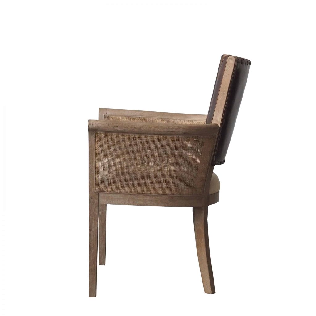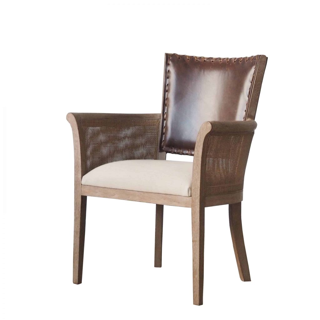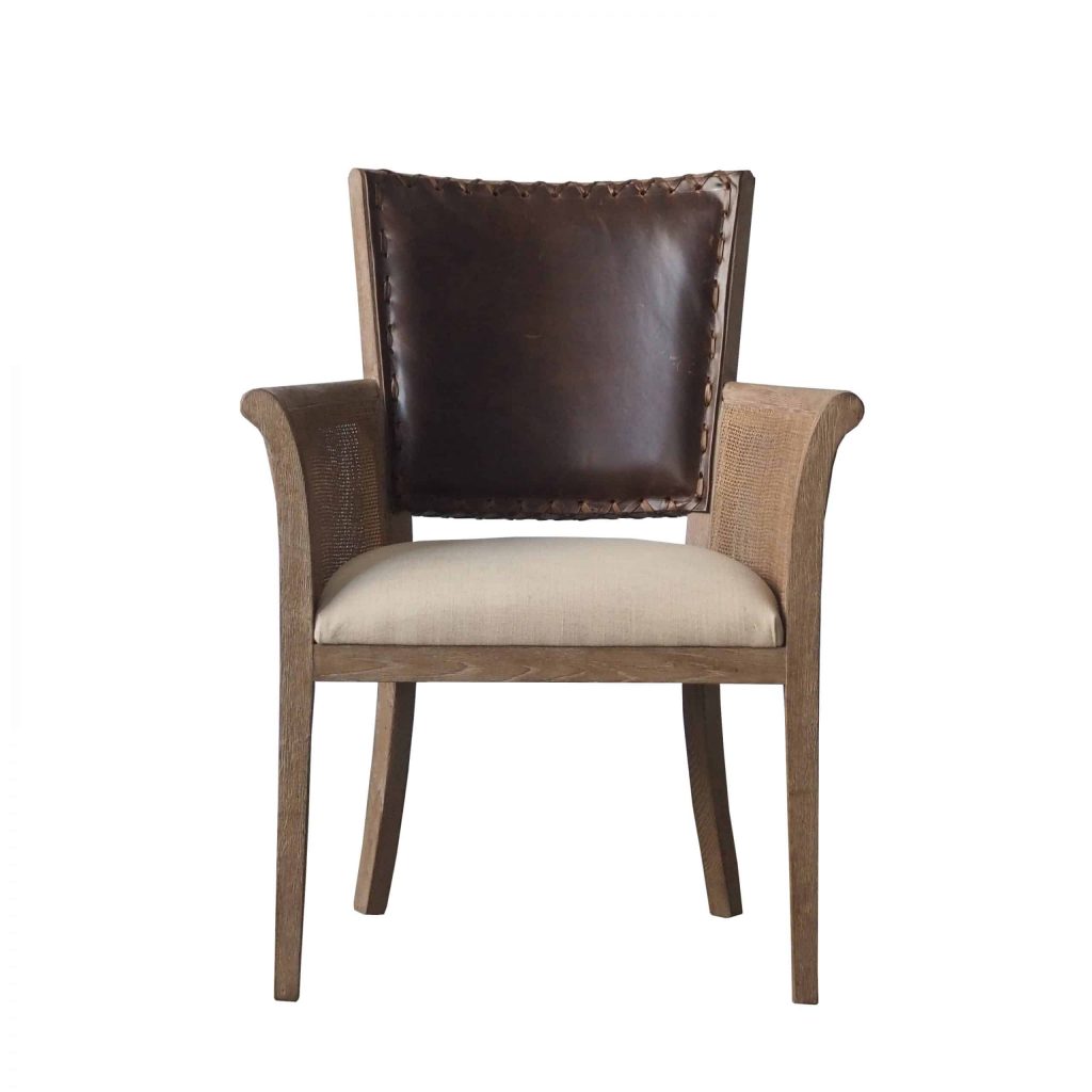 Breezy mid-modern comfort goes hand-in-hand with the Burnham Home Designs Amelia Arm Chair. This chair is made with an oak wood frame and then a mix of leather and linen upholstery. The seat cushion is padded for comfort. Arrange several of the Amelia Arm Chairs around a dining table or place a pair of them in the living room to create a natural-looking modern nook. Every chair arrives pre-assembled for your convenience.