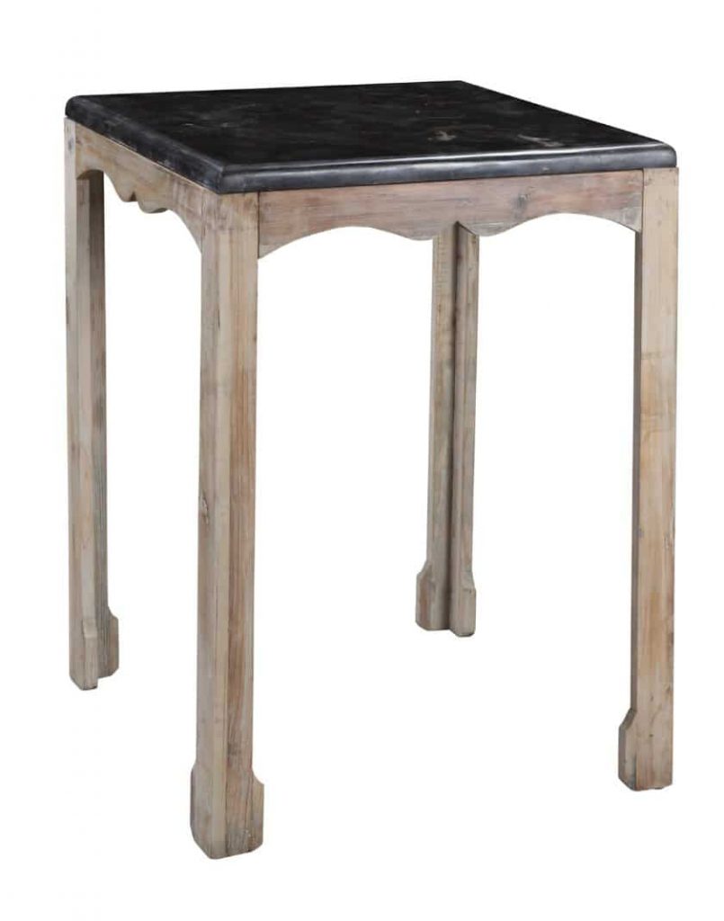 The Amsler Side Table is the final touch you never knew your living room needed. This accent table has the look of a classic antique piece, from the scalloped apron to the carved feet. A deep gray slate top finishes off the table with panache. The frame is even constructed from reclaimed wood. Accent it with your favorite decorative figurines or let it stand pretty on its own. Available in two finishes: Gray Wash or Natural wood.