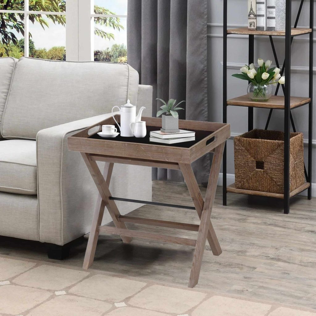 Functional design has never looked as good as the Andrew Corner Side Table. This farmhouse-inspired end table comes with a tray-style top that’s perfect for displaying your favorite indoor plants, vases, and other colorful decor. It’s crafted from natural reclaimed fir wood with metal accents. The side table fits perfectly into a corner or between two sofas.