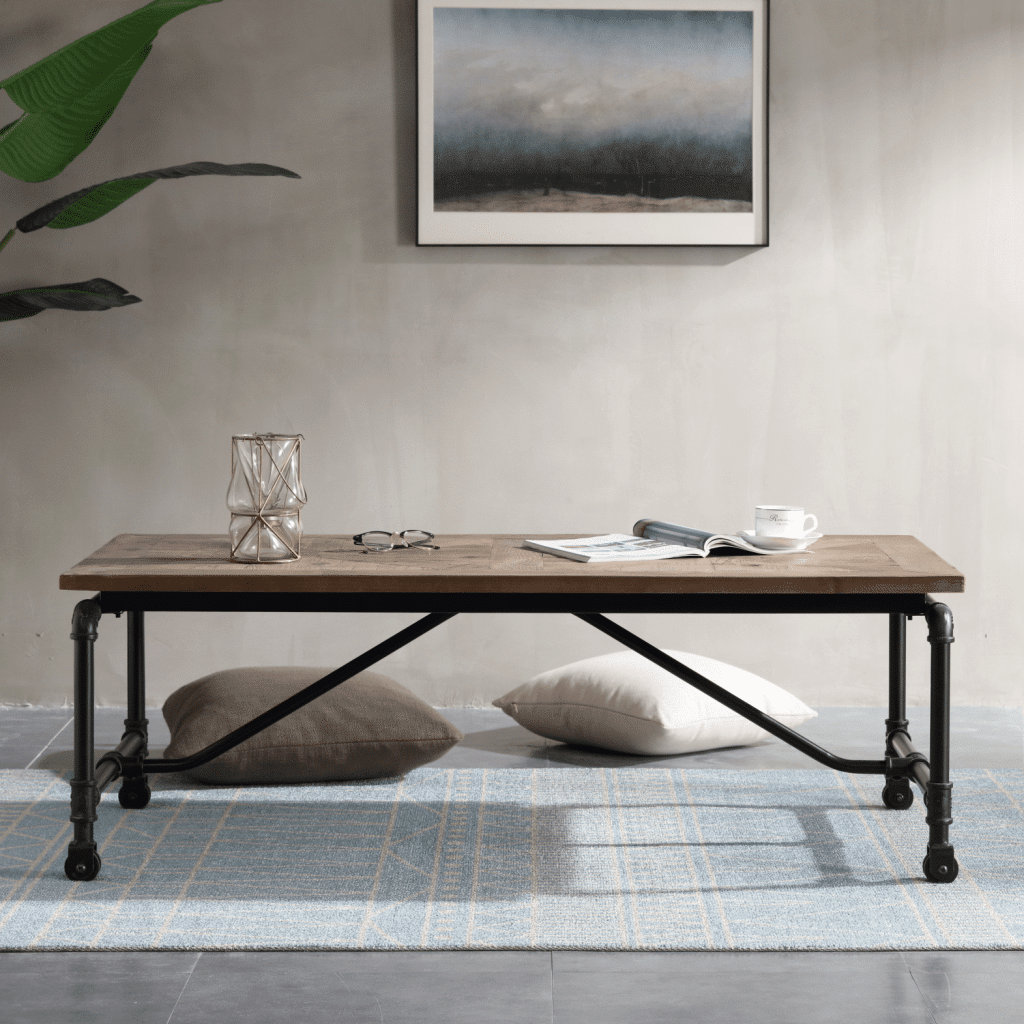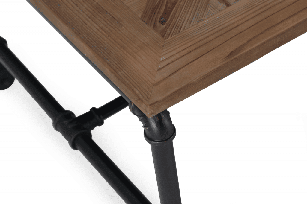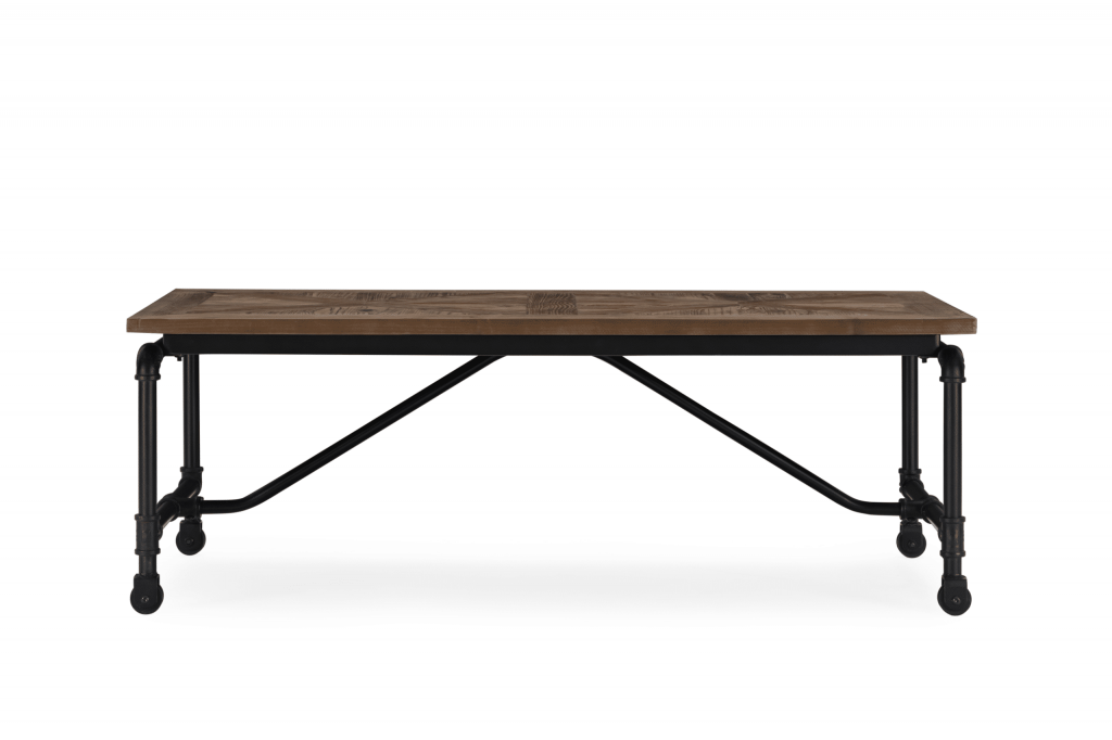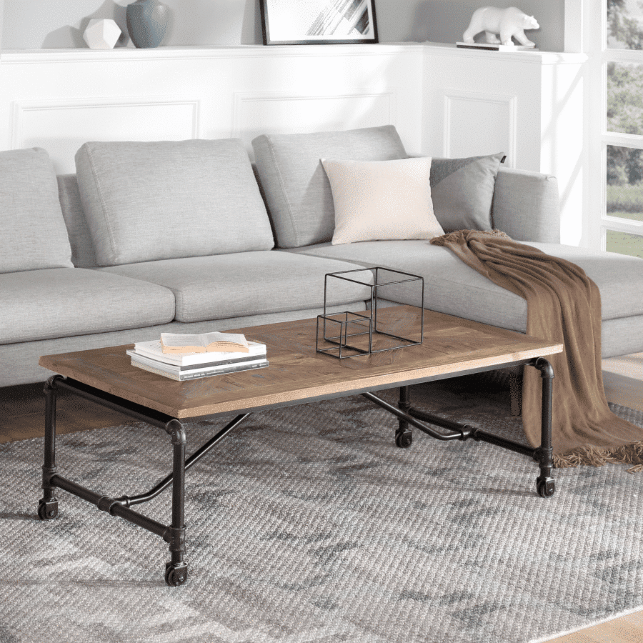 The Barrow Coffee Table manages to take everything you love about industrial style and package it together in one inviting design. Seamlessly combining mixed materials? Check. Reclaimed wood with beautiful inlaid design? Check. Metal accents? Check. This coffee table takes elements like stainless steel industrial pipes and manages to make them look inviting – without erasing any of the subtle edge of the design. Caster wheels on the base complete the table, so you can easily move it around your living room as needed.