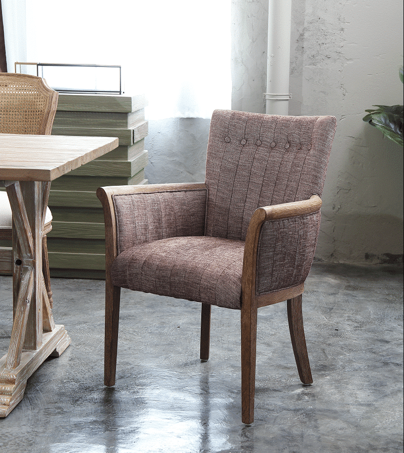 At the head of the dining table or in a corner of your living room, Burnham Home’s Claire Arm Chair shines. This transitional style chair is constructed with a natural ash wood frame. The seat and back are lightly padded and then upholstered in red-brown linen upholstery. Vertical channel tufting and button tufting round out the look. Protective glides on the base of each leg guard against damage and scratches to your hardwood floors.