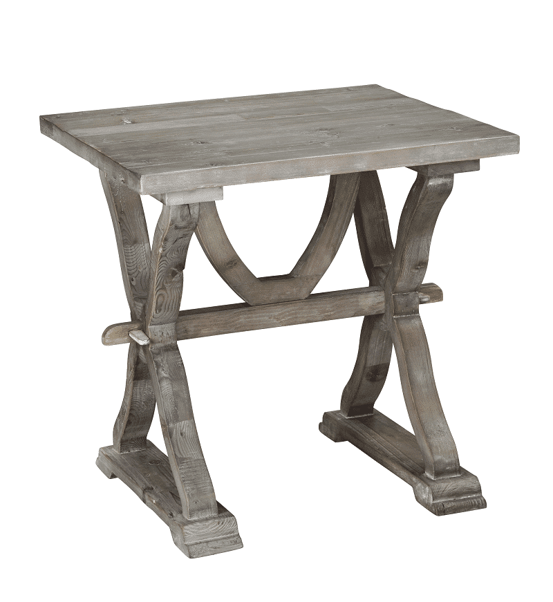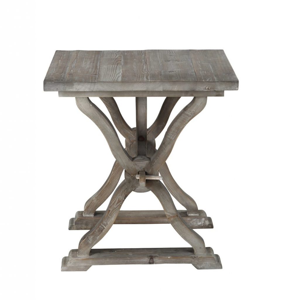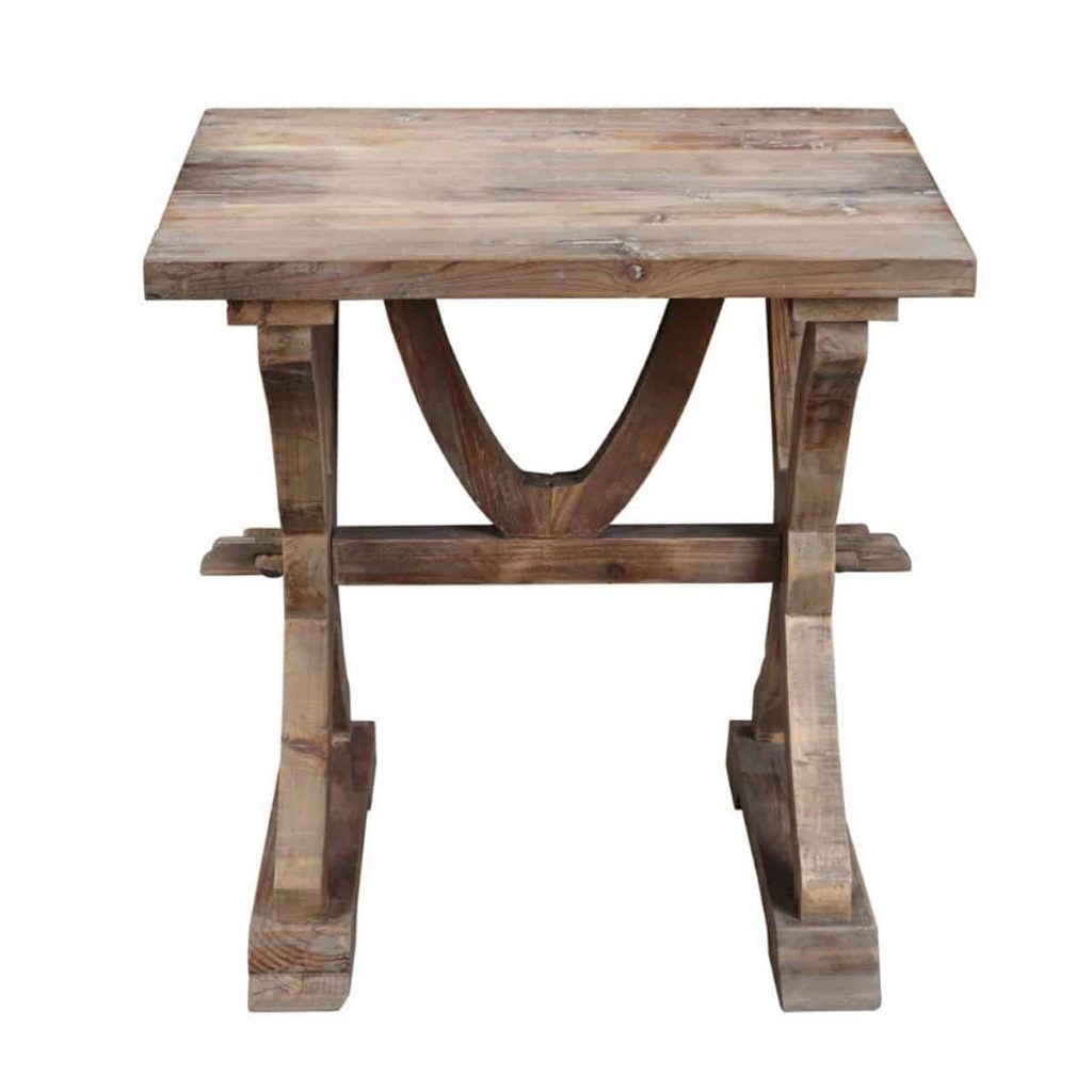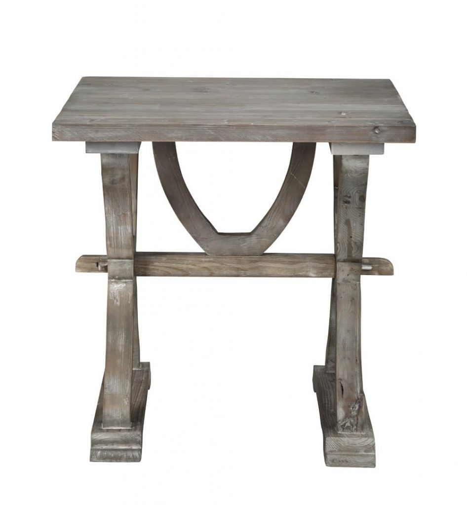 The Colette Side Table is the rustic sidekick your living room needs. The casual farmhouse finish of the reclaimed wood contrasts with the elegant trestle-style base. The result is an accent table that blends seamlessly into your current living room. Set this table right next to your couch to provide a handy spot for holding drinks, or place it in a corner with a decorative display of colorful blooms resting on top.