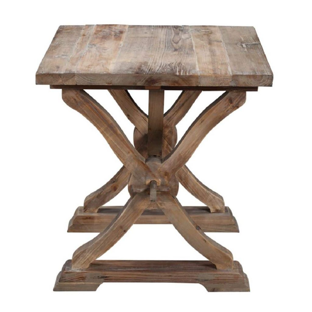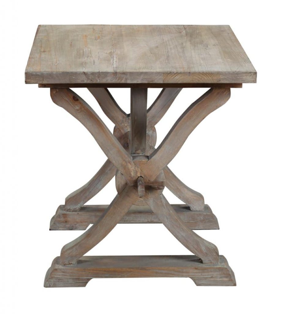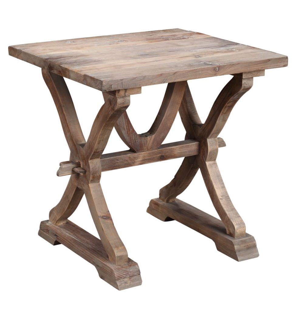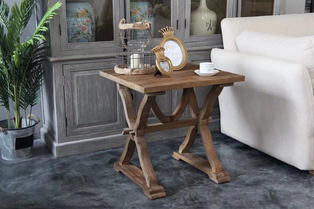The Colette Side Table is the rustic sidekick your living room needs. The casual farmhouse finish of the reclaimed wood contrasts with the elegant trestle-style base. The result is an accent table that blends seamlessly into your current living room. Set this table right next to your couch to provide a handy spot for holding drinks, or place it in a corner with a decorative display of colorful blooms resting on top.
