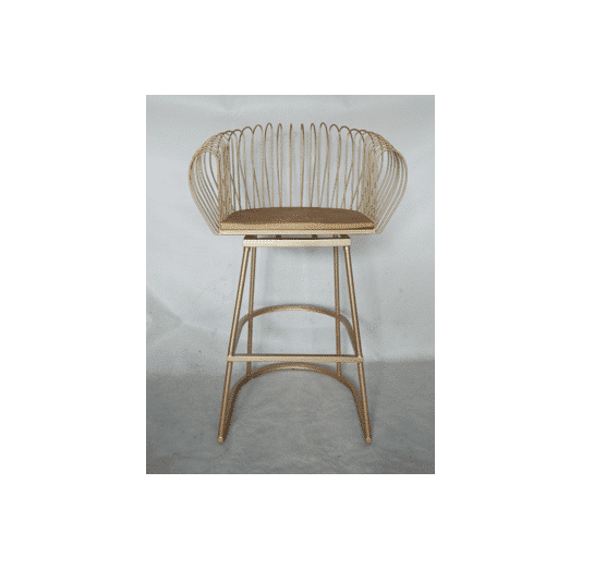 A perfect Barstool for your entertaining area featuring a Gold finish with Metal Frame and Natural Fir wood seat. This stool comes in bar height with a swivel seat allowing for a perfect barstool for any room in your home. This item comes out of China.