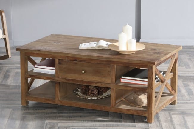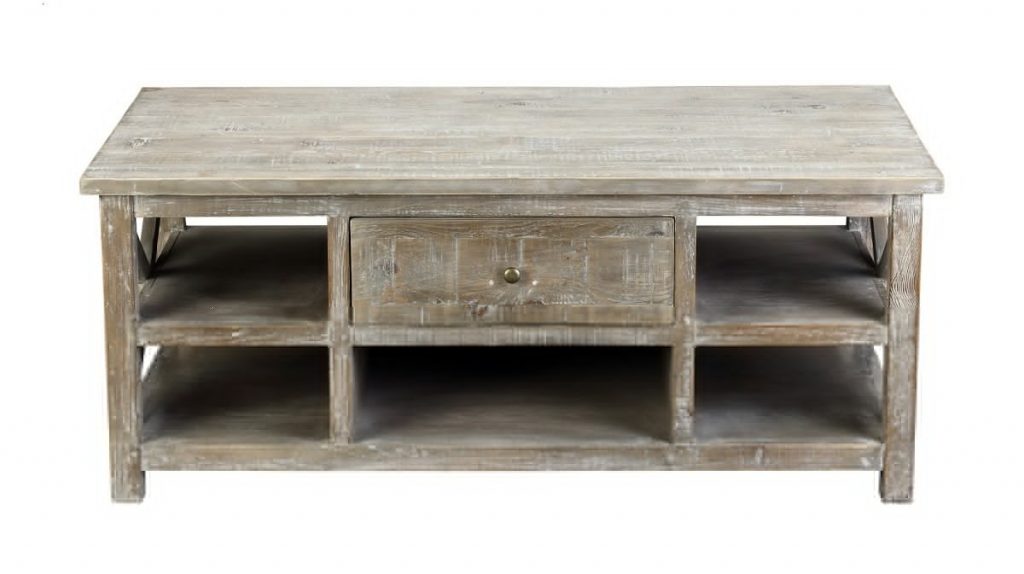 The Greyson Coffee Table puts run-of-the-mill farmhouse coffee tables to shame. It’s available in White Wash and Natural finish options – whichever color you choose, you’ll be wowed by the natural beauty of the oak wood. This functional coffee table uses only reclaimed oak wood, ensuring every single unit is unique. The center storage drawer can be used to hide odds and ends. It opens from either side and can be used in both the top and bottom middle cubby, so feel free to place this table along a wall. Several open cubby areas provide additional space for storing or displaying your favorite decorative items.