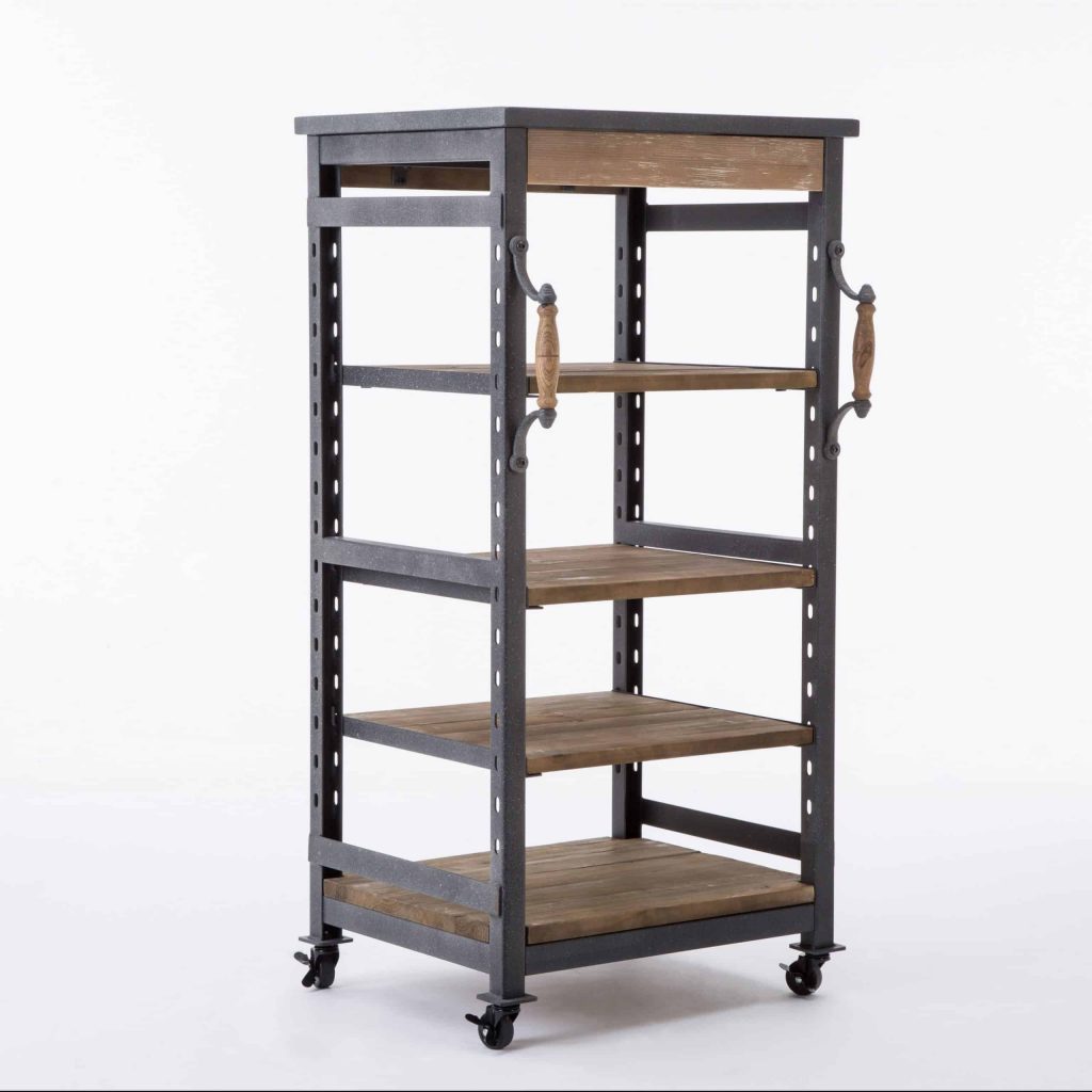 If boring or traditional aren’t in your vocabulary, then you’ll love the industrial edge the Hampton Bookshelf brings to your home. This mixed material bookcase is crafted with a sturdy metal frame and four adjustable wood shelves. Four lockable caster wheels on the base allow you to easily switch up the look of your living room or office. Two handles make it even easier for you to move this bookcase from one spot to another. Stack it full of your favorite books or decorate the shelves with candles, silk flowers, picture frames, and other personal accents.