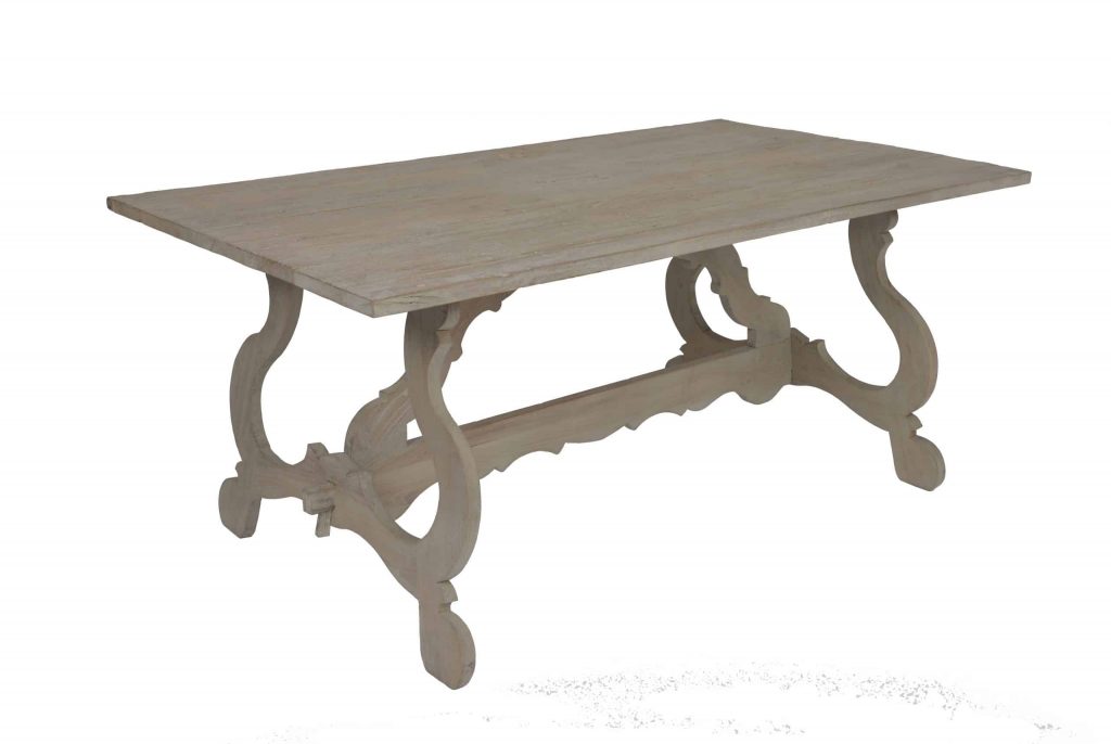 Serve up a spread fit for royalty on the Isabella Dining Table. Inspired by the elegance of French country designs, this table is crafted from solid wood with a scalloped base. Pair it with your favorite traditional or farmhouse style dining chairs to create the perfect sophisticated atmosphere in your dining room. The reclaimed elm wood guarantees that every table will be slightly unique. Dining chairs are sold separately. Please note that this table arrives disassembled. You will need to attach the base to the top prior to use. See assembly instructions for more details.