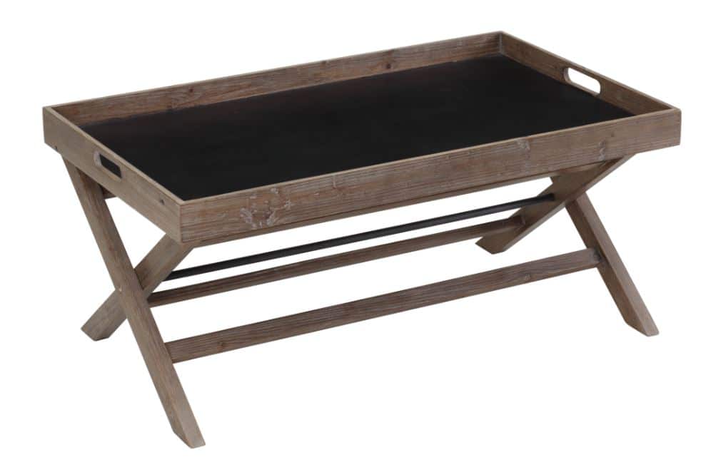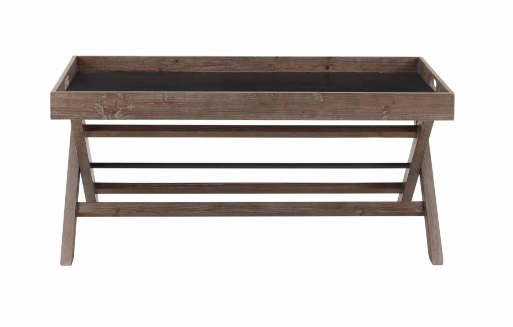 The Lisa Coffee Table puts the “design” in functional design. This modern coffee table makes serving guests a breeze. It comes with a removable tray-style top which rests on an X cross base. When you have guests over, easily lift the top and fill it with cups of coffee or plates of dessert, then carry it back to the living room. Two cutout handles and raised edges make for easy portability. The natural finish on the reclaimed fir wood frame ensures this table looks great when it’s sitting stationary in the middle of the room as well.