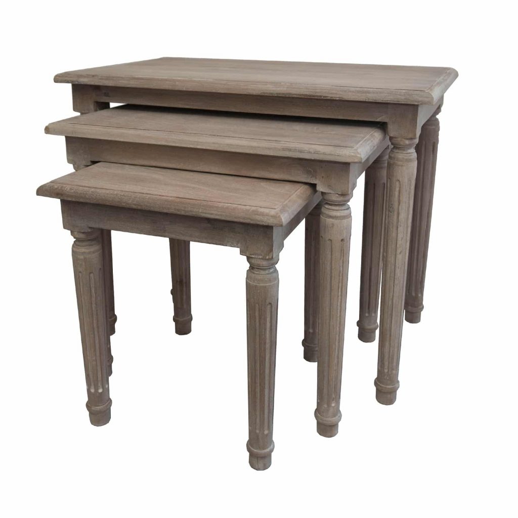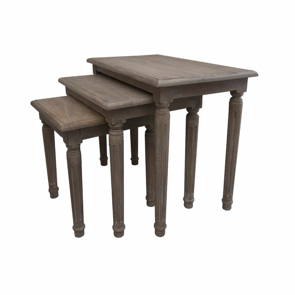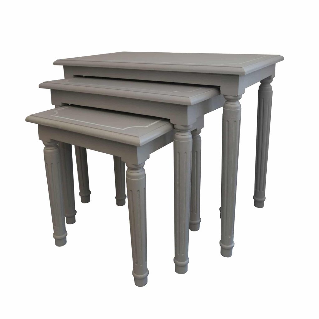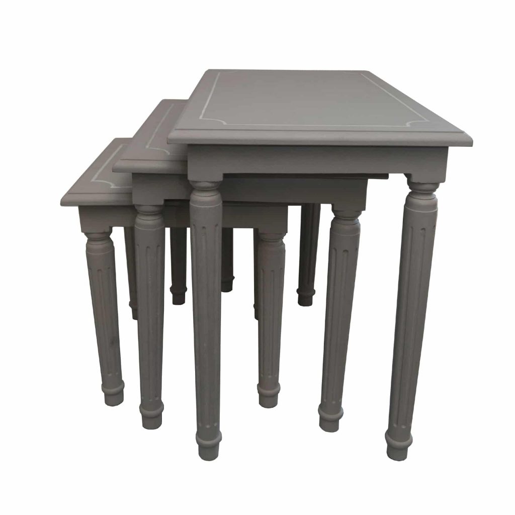 More really is merrier when you have the Macbeth Nesting Tables in your living room. This three-piece set include three matching tables in graduated sizes. This means that whenever they’re not being used, you can easily stack them underneath each other, saving on space. But the Macbeth tables look so charming, you’ll want to have them on display as much as possible. From the hand-carved fluting to the delicate white accents and slate gray finish, these tables are a decorator’s delight.