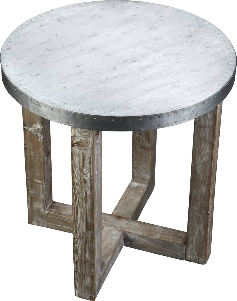 The Murray may be a side table, but it’s full of centerpiece style. This industrial accent table is crafted with mixed materials. The round metal top is distressed, with decorative rivet details enhancing the industrial feel. The base, which is crafted from reclaimed pine wood, comes in your choice of two different finish options. Accent this side table with a bright lamp or playful paperweight.