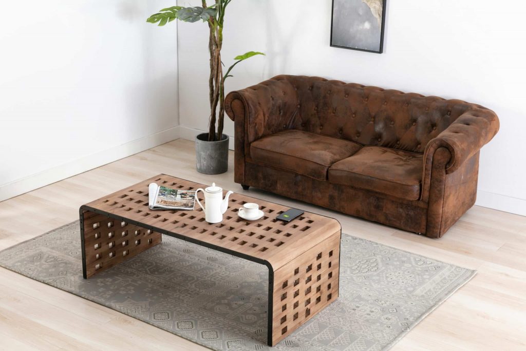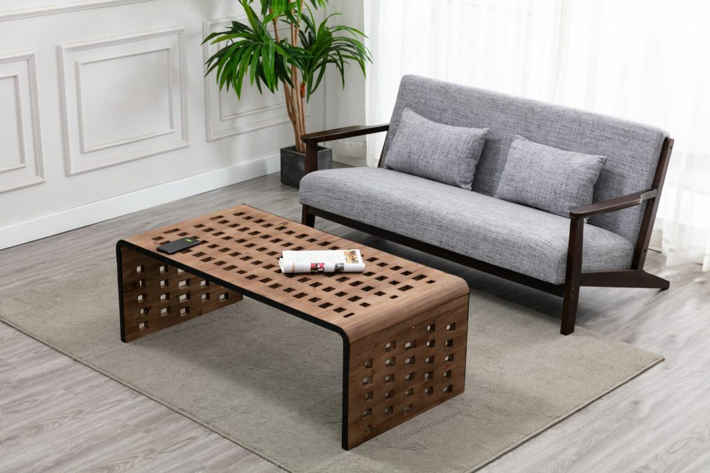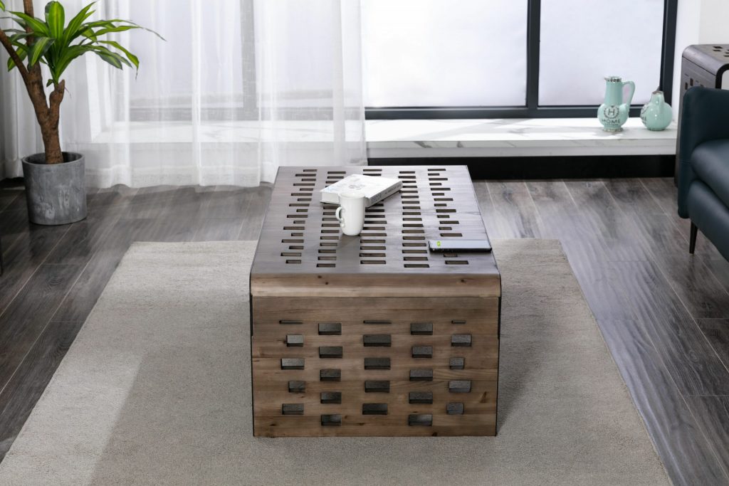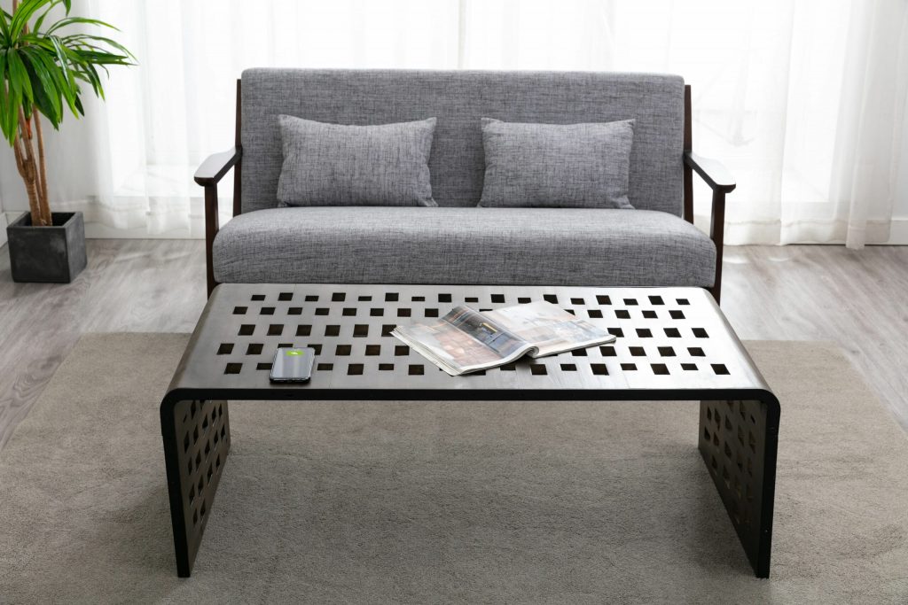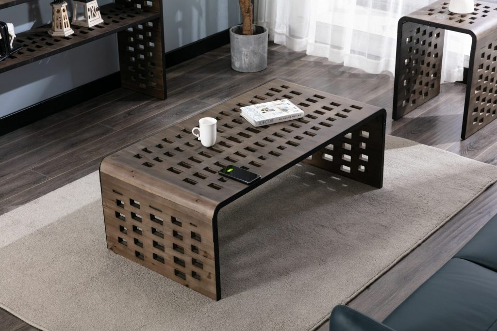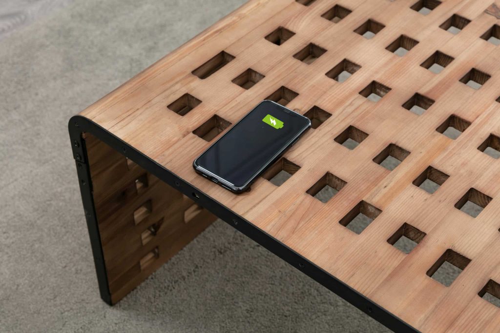 The Parker Coffee Table easily becomes the centerpiece of your living room with its unique design and craftsmanship. Constructed from old fir wood, this table has a slat-like design with an open checkerboard of holes creating visual interest. This table has a built in wireless phone charger that works with any Apple or Android phone with wireless charging capabilities. Simply place your phone on top of the charging symbol to charge (Charging symbol is a removable sticker). The Parker Coffee Table is available in two finishes; natural or walnut. This long, low U-shaped table rests sturdily on two legs. You’ll be able to blend it easily into your Nordic-, modern-, or rustic-inspired home. And for a consistent design scheme, be sure to add on the matching Parker End Table and Parker Console Table.