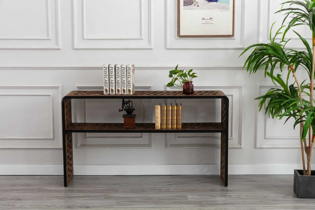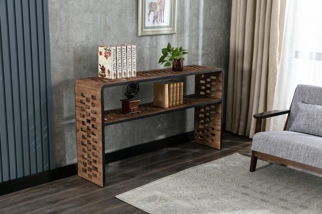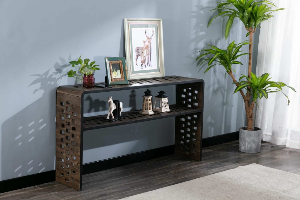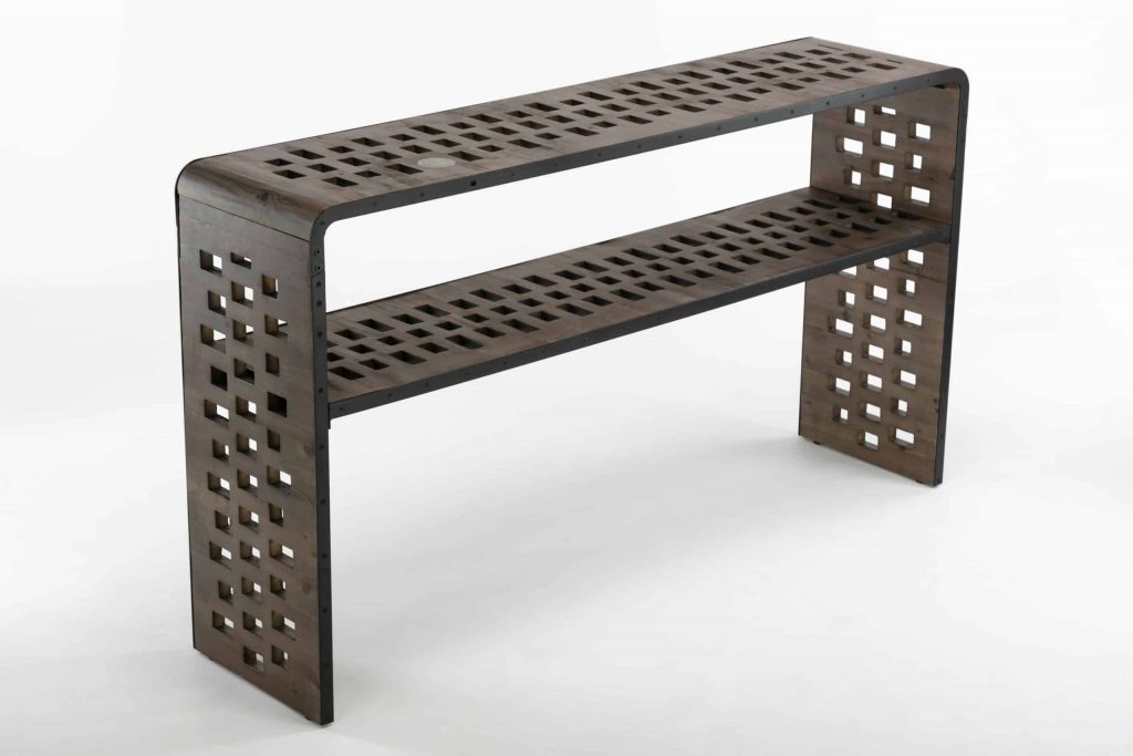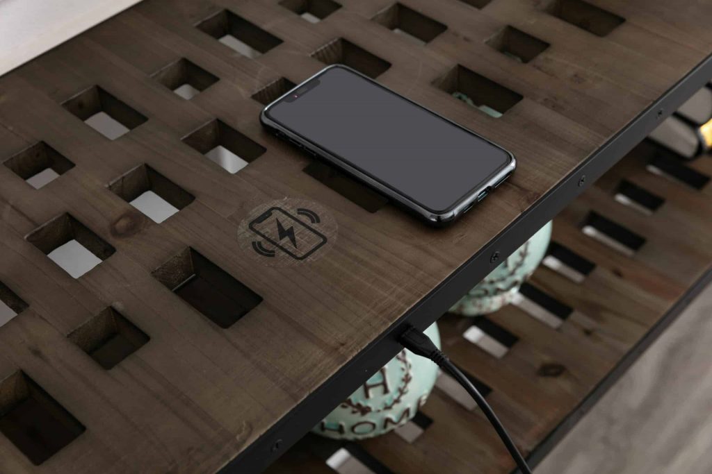 The Parker Console Table from Burnham Home Designs will inspire your guests to “ooh” and “ahh” over its unique design. Created from slats of old fir wood, this sofa table is scattered all over with holes that add a sense of playfulness. This table has a built in wireless phone charger that works with any Apple or Android phone with wireless charging capabilities. Simply place your phone on top of the charging symbol to charge (Charging symbol is a removable sticker). The Parker Console Table is available in two finishes; natural or walnut. Try placing it in a hallway or behind a couch and topping it off with colorful greenery. And to create a sense of cohesion in your home, look to the other Parker living room items: the Parker Coffee Table and Parker End Table are sold separately.
