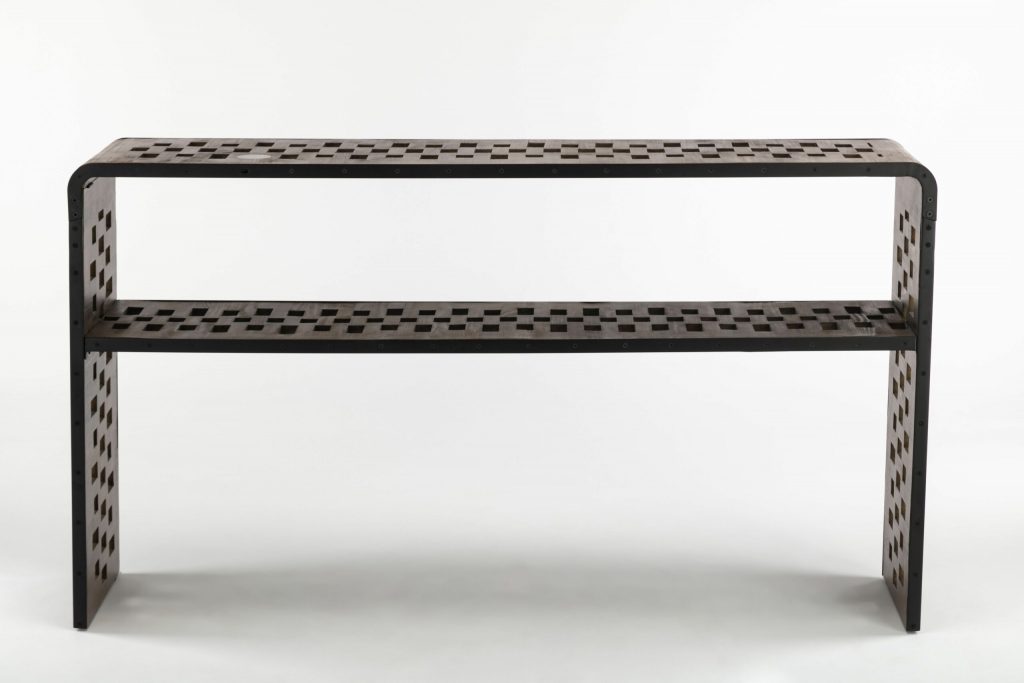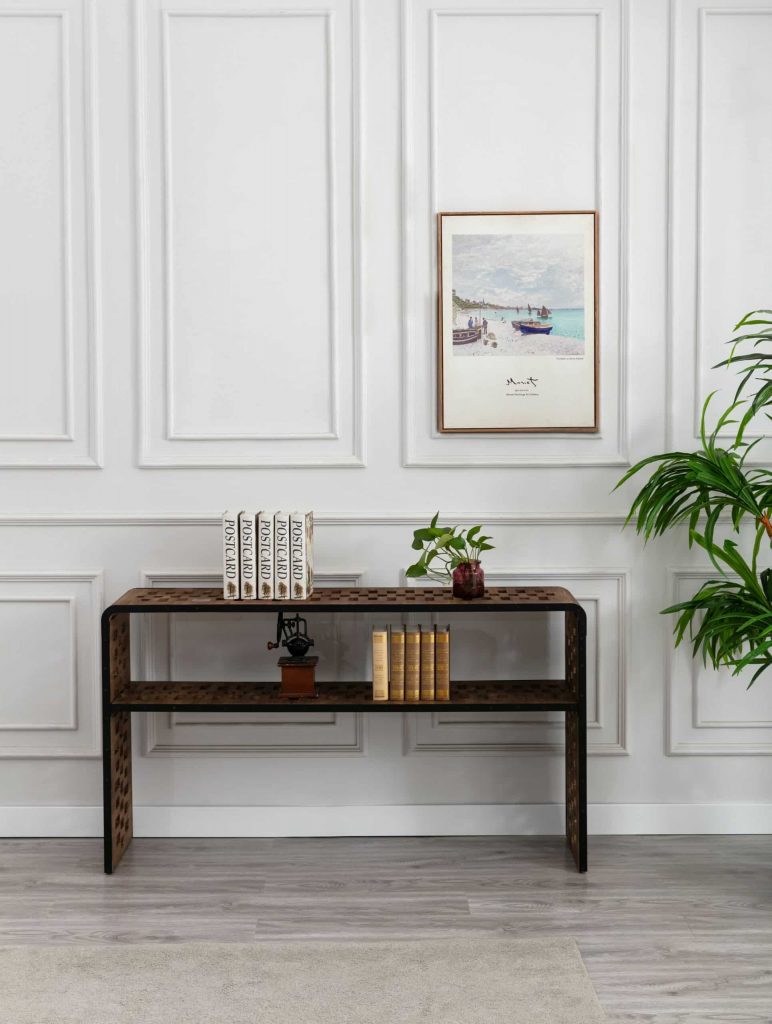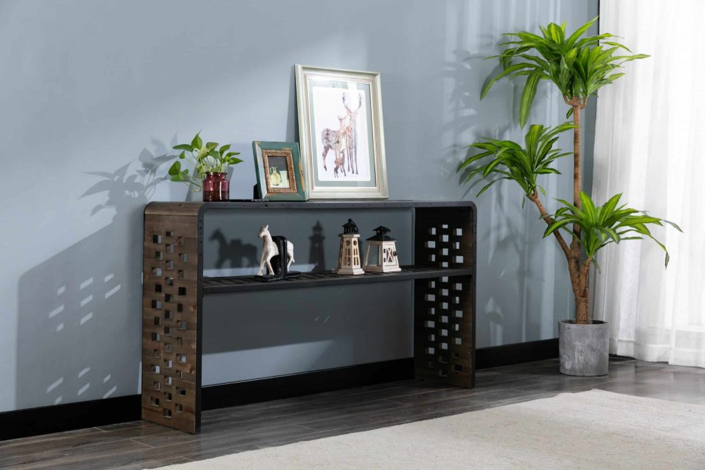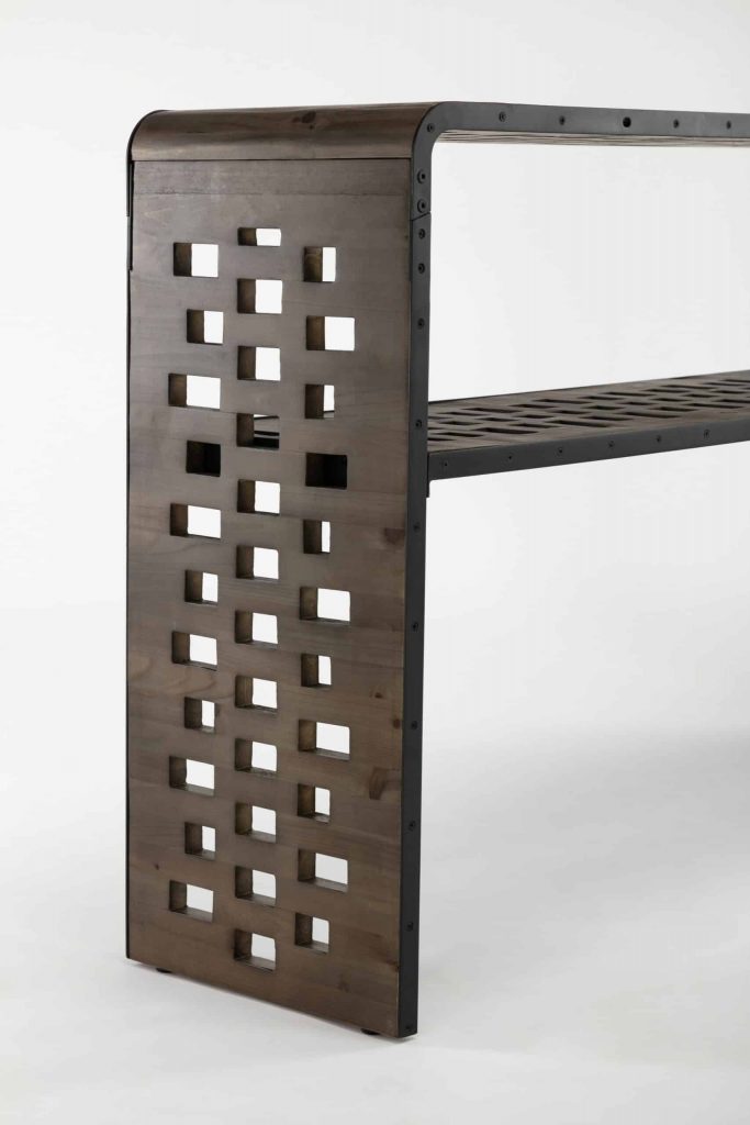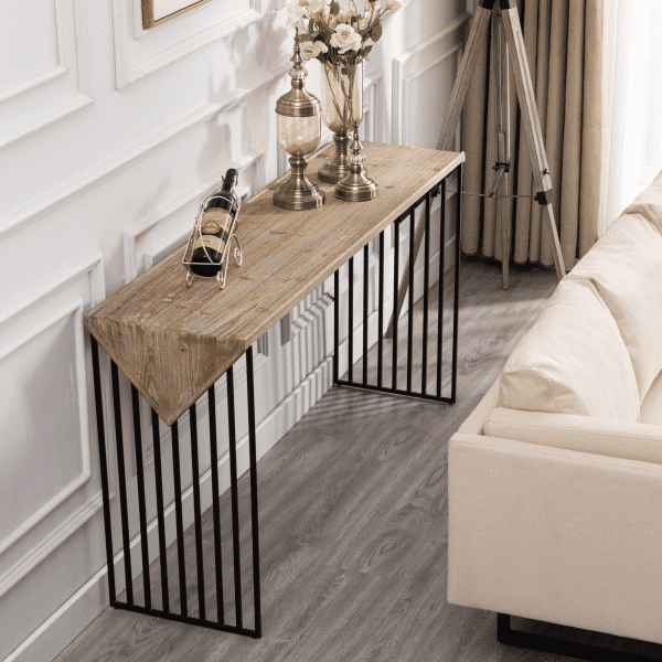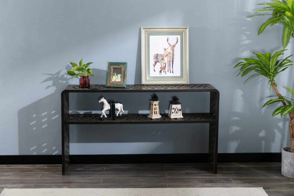 The Parker Console Table from Burnham Home Designs will inspire your guests to “ooh” and “ahh” over its unique design. Created from slats of old fir wood, this sofa table is scattered all over with holes that add a sense of playfulness. This table has a built in wireless phone charger that works with any Apple or Android phone with wireless charging capabilities. Simply place your phone on top of the charging symbol to charge (Charging symbol is a removable sticker). The Parker Console Table is available in two finishes; natural or walnut. Try placing it in a hallway or behind a couch and topping it off with colorful greenery. And to create a sense of cohesion in your home, look to the other Parker living room items: the Parker Coffee Table and Parker End Table are sold separately.