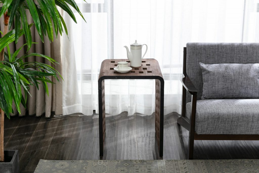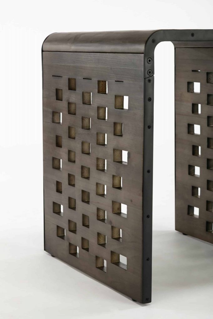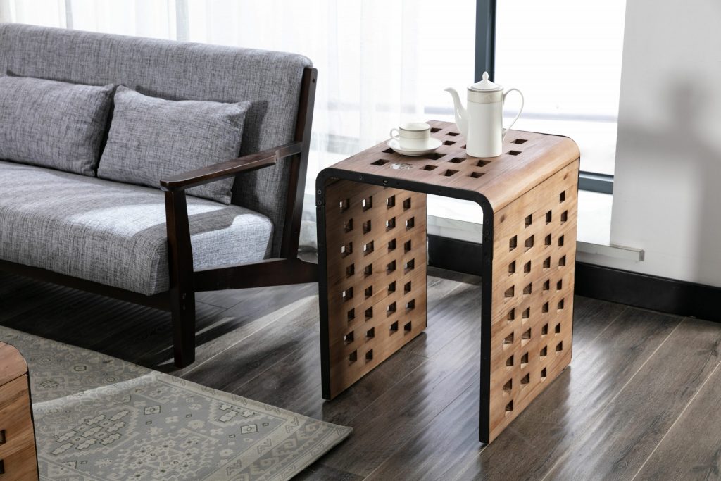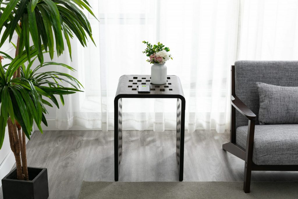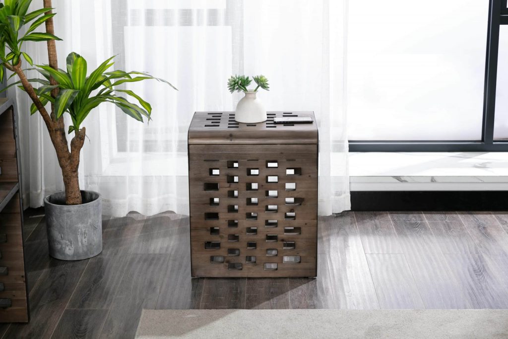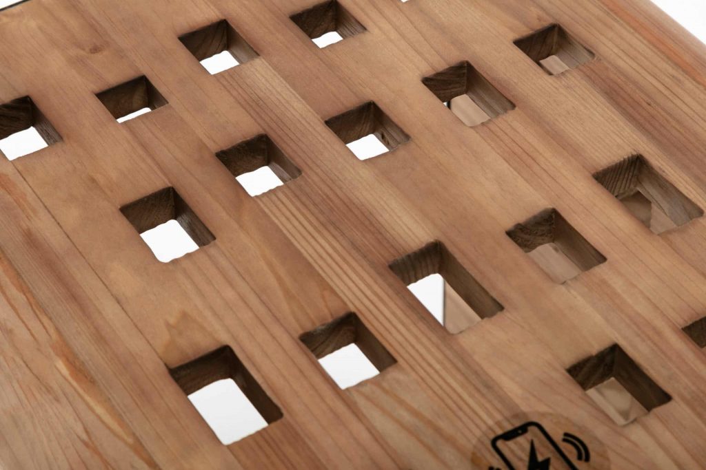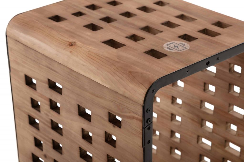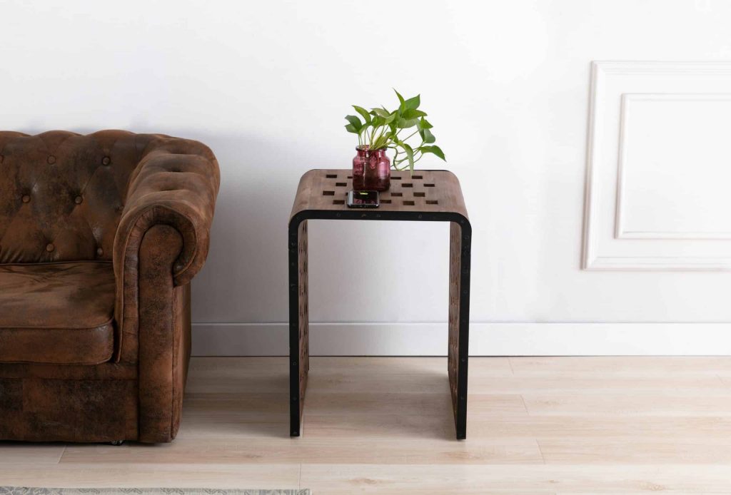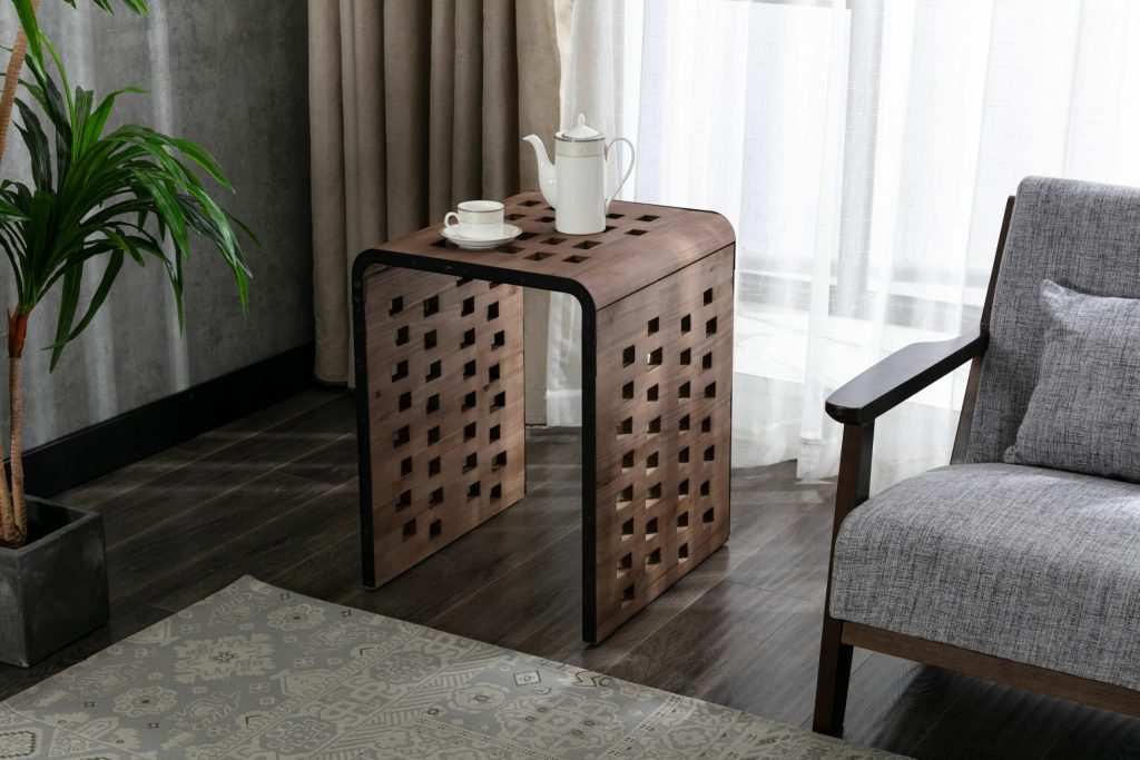 The Parker End Table from Burnham Home Design fits your home like the missing piece to your design puzzle. This unique end table is crafted from old fir wood with an open-slat design all along its surface. The U-shaped table is the perfect place to display lamps and decor. This table has a built in wireless phone charger that works with any Apple or Android phone with wireless charging capabilities. Simply place your phone on top of the charging symbol to charge (Charging symbol is a removable sticker). The Parker End Table is available in two finishes; natural or walnut. Pair it with the matching Parker Coffee Table and Parker Console Table (sold separately) for a living room that gets the guests talking in the best way.