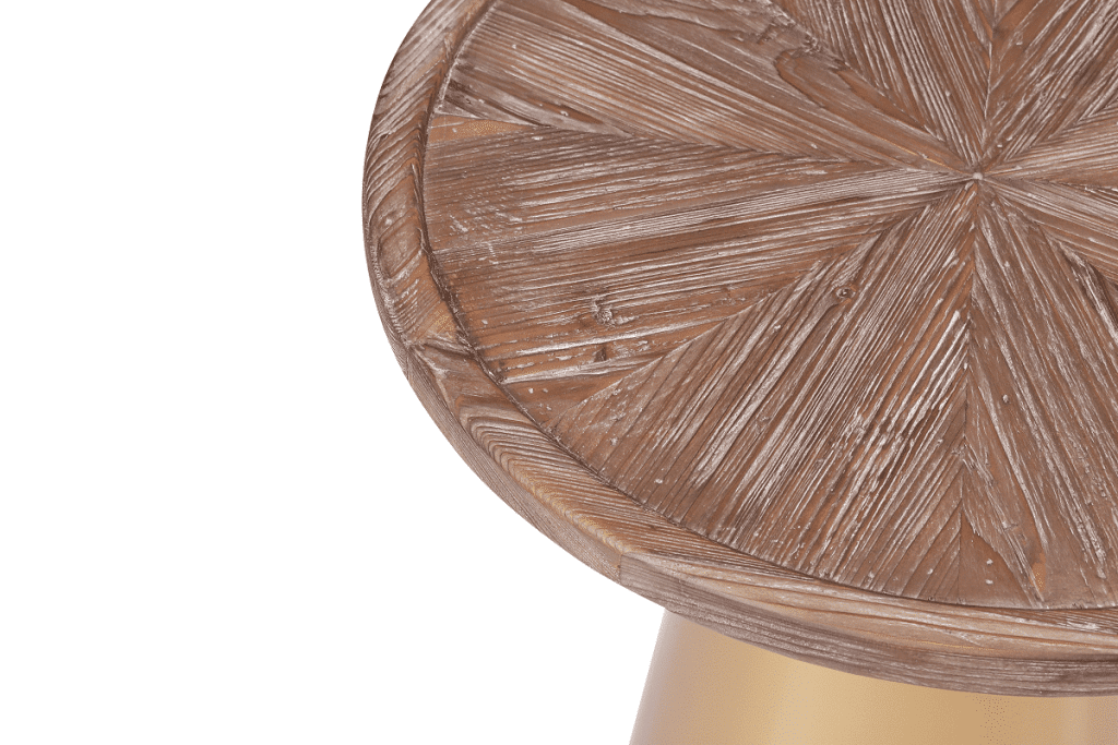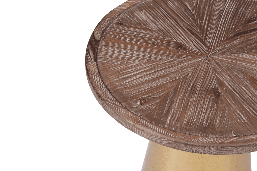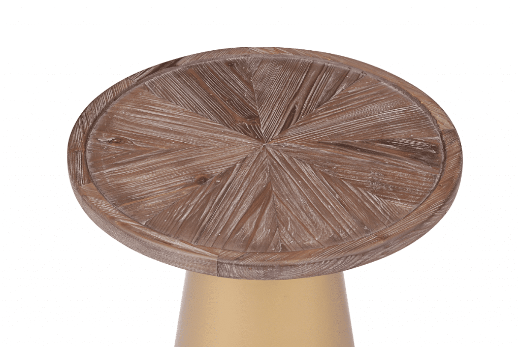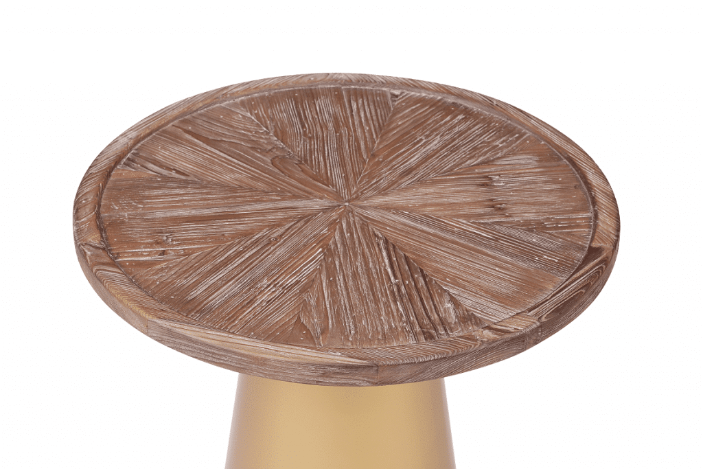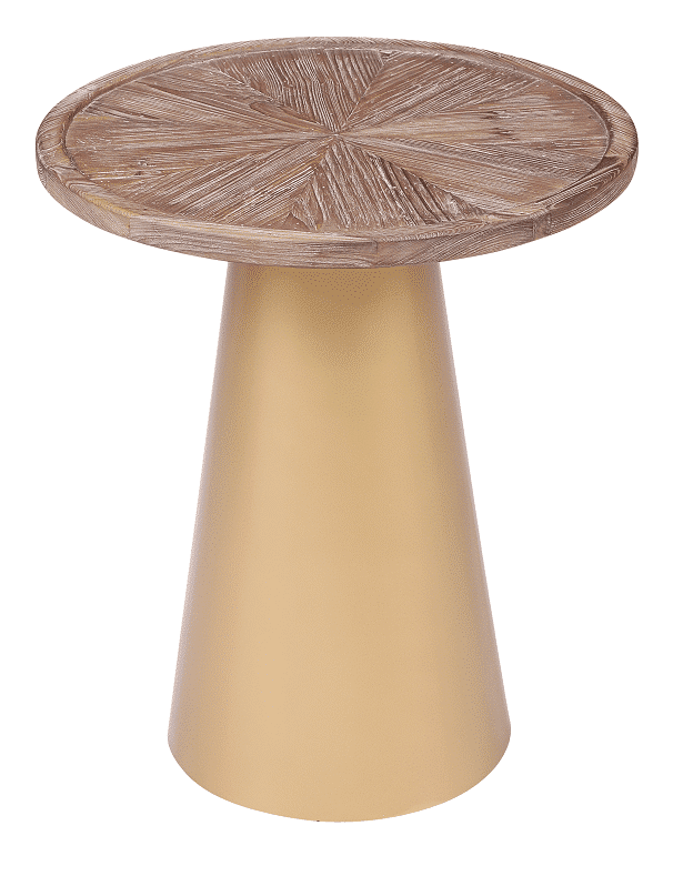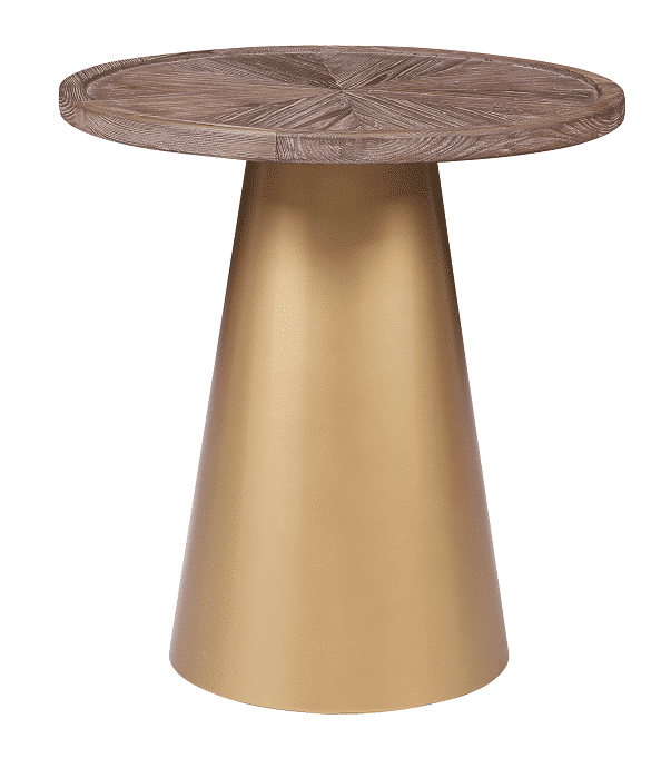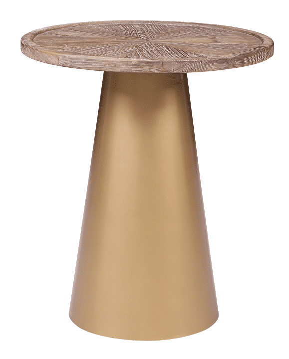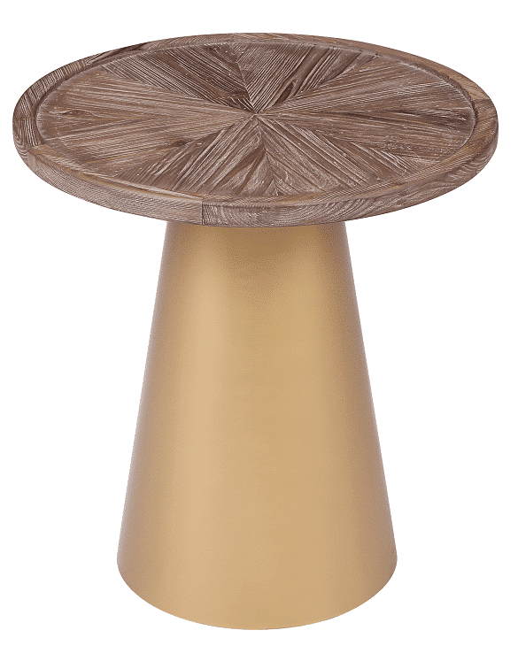 Mid-century designs like the Patrick Corner Table bring a glamorous look and feel to your living room or bedroom. The conical metal base is finished in a brilliant gold which contrasts perfectly with the Coffee Brushed finish of the reclaimed pine wood top. And to complete your throwback-inspired living room, pair this end table with the matching Patrick Coffee Table (sold separately).