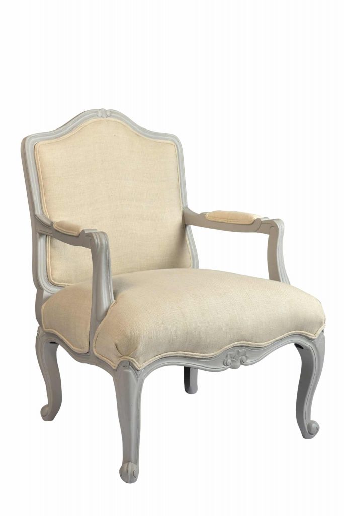 Give yourself the royal treatment and take a seat in the Pinto Arm Chair. This elegant accent chair has a traditional design that immediately amplifies the look of any space. It’s crafted with a mango wood frame in a soft gray finish. The wood features hand-carved details, like the curving cabriole legs and fleur-de-lis accents. Lightly padded seat and back cushions are upholstered in linen and finished with decorative double welt trim. Relax in your own personal throne with the Pinto.