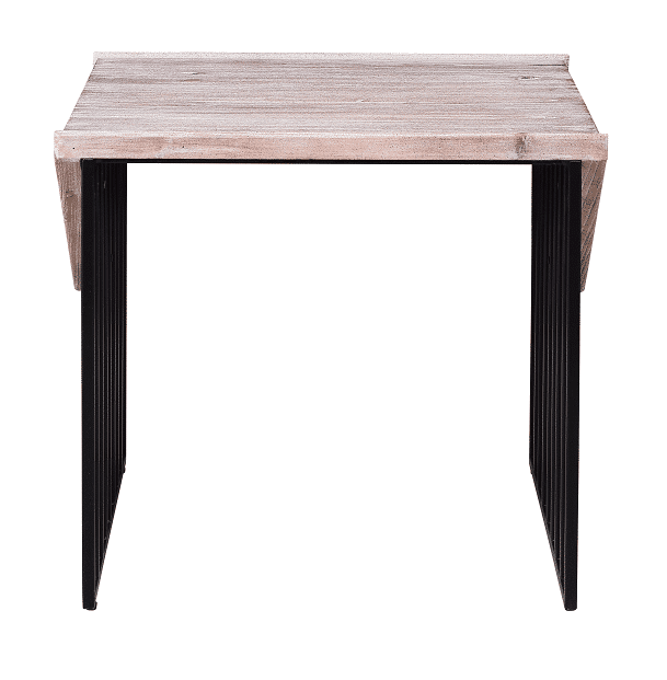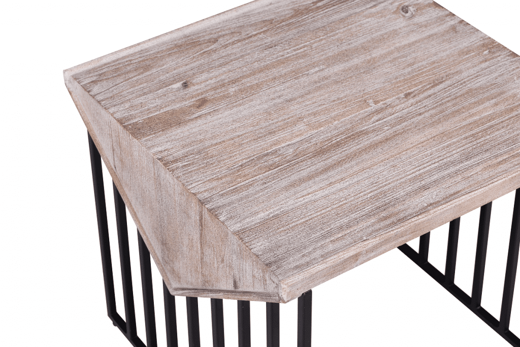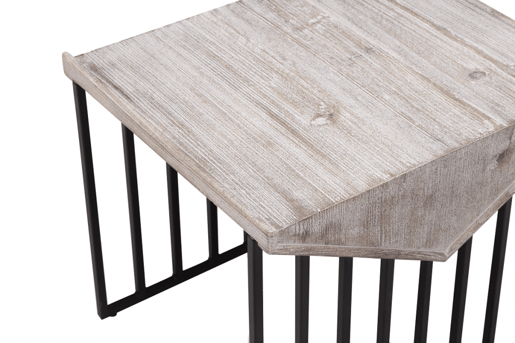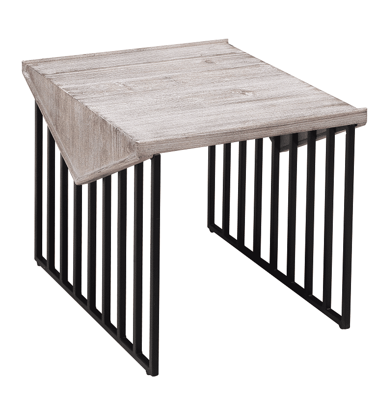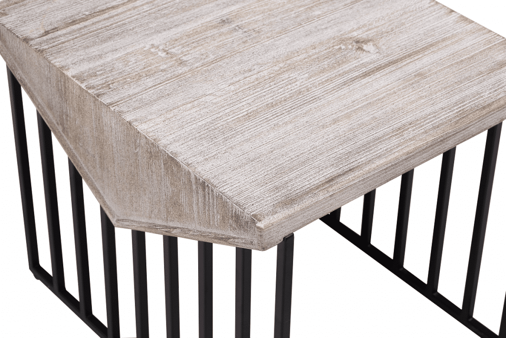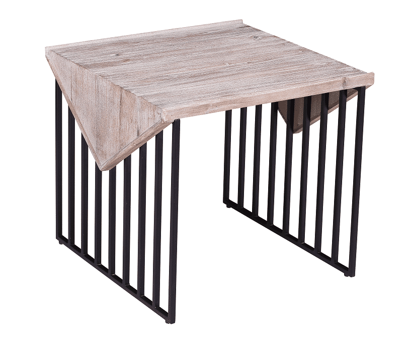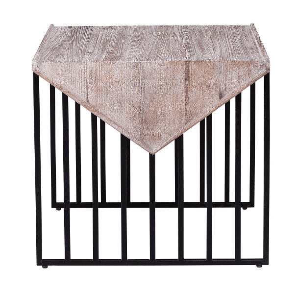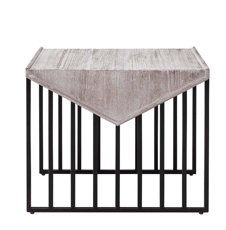 The Burnham Home Designs Sandra Corner Table is full of eye-grabbing design details that help it look at home in industrial- and rustic-inspired homes. The slat-style metal base adds some edge while the reclaimed pine wood top brings a weathered softness to the piece. The unique architectural design of the tabletop spills down each side in matching triangles. Round out the look of your living room by adding on the matching Sandra Console Table and Sandra Coffee Table (both sold separately).