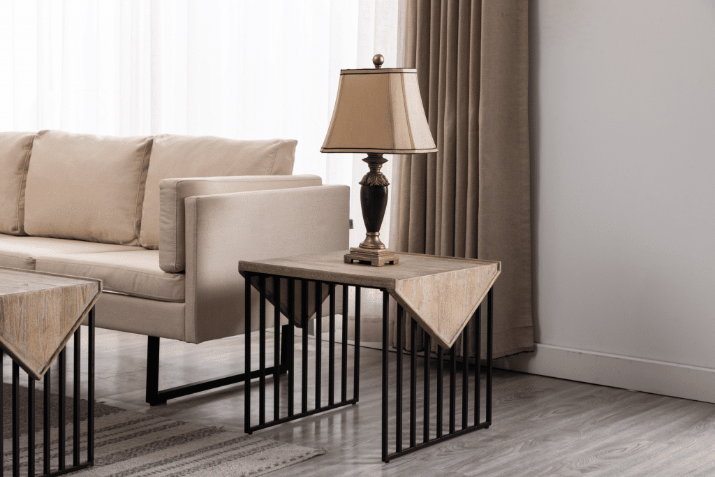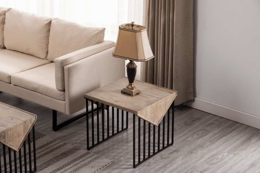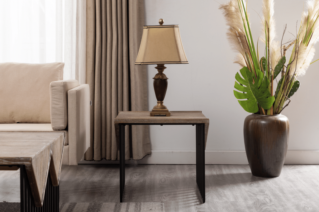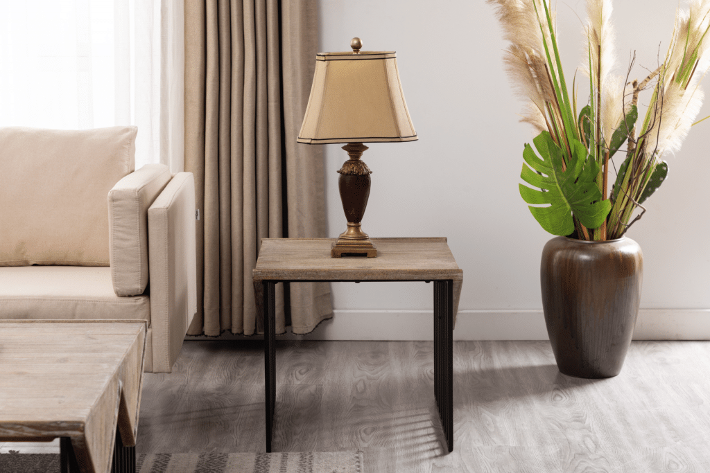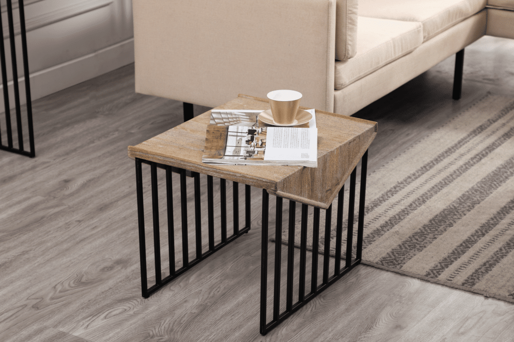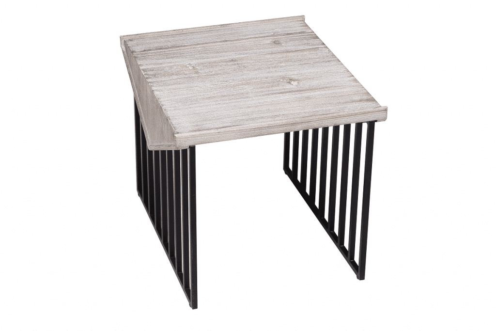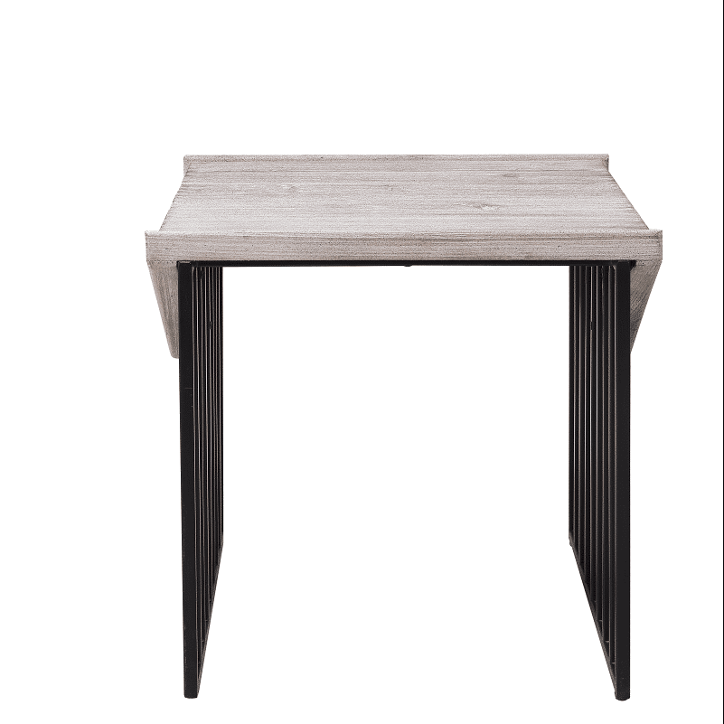 The Burnham Home Designs Sandra Corner Table is full of eye-grabbing design details that help it look at home in industrial- and rustic-inspired homes. The slat-style metal base adds some edge while the reclaimed pine wood top brings a weathered softness to the piece. The unique architectural design of the tabletop spills down each side in matching triangles. Round out the look of your living room by adding on the matching Sandra Console Table and Sandra Coffee Table (both sold separately).