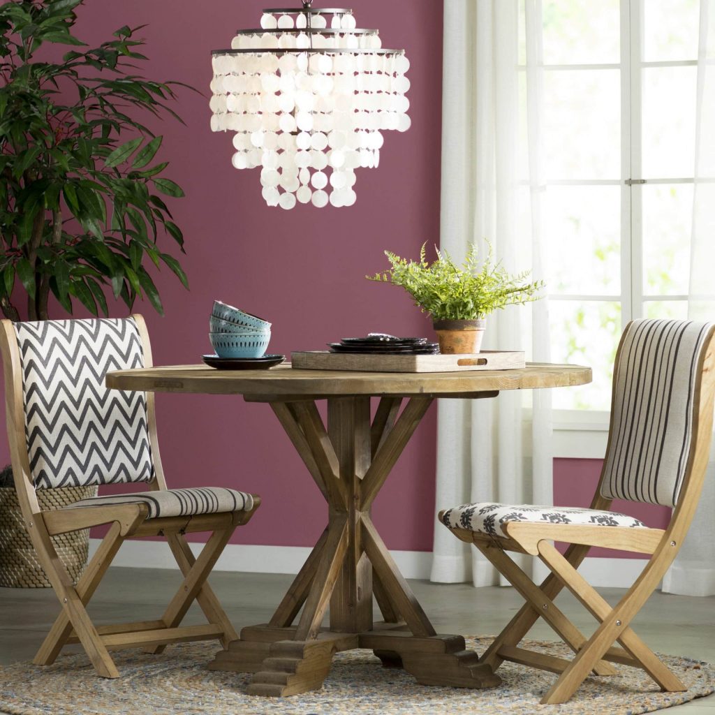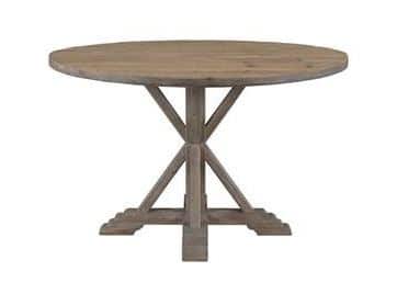 This dining table completes the look in your dining room with its well-loved aesthetic. With an hourglass-shaped pedestal base and round tabletop, this table can fit into space-conscience dining areas. The X-shaped footprint with diagonal supports adds a farmhouse theme to your room, while the X-planked tabletop provides added farmhouse style. Its charming farmhouse look, and natural finish exudes warmth and coziness, creating a welcoming atmosphere for your family and friends to gather around. Whether you’re hosting a dinner party or enjoying a casual family meal, this table provides ample space for everyone to gather and enjoy their meals together.