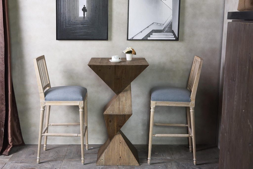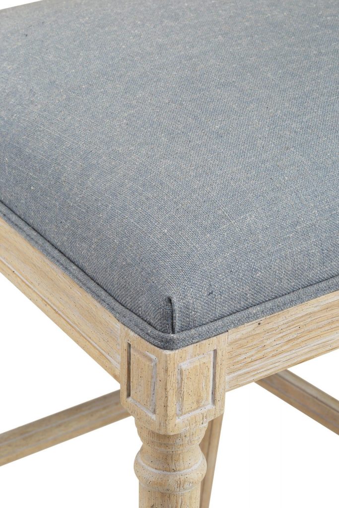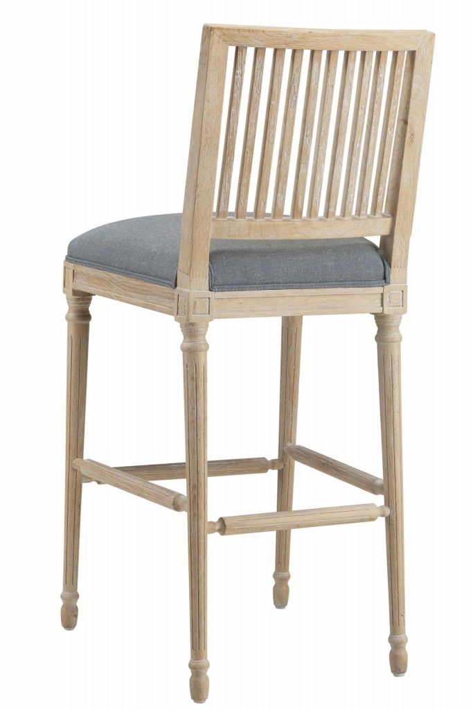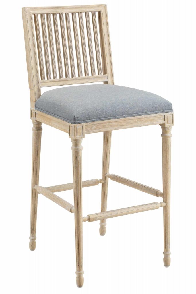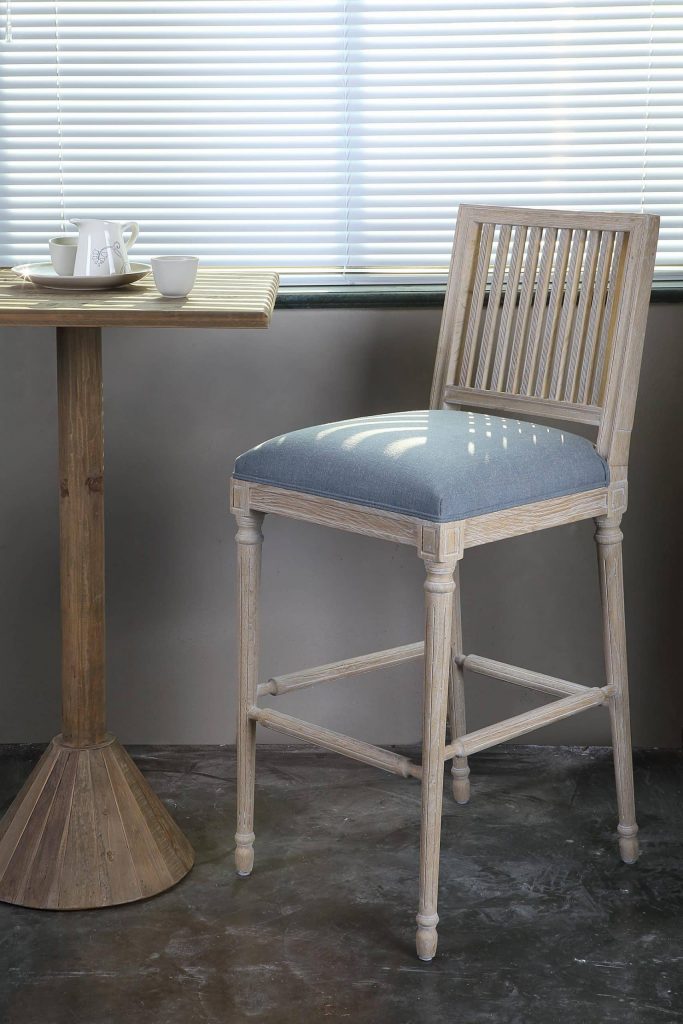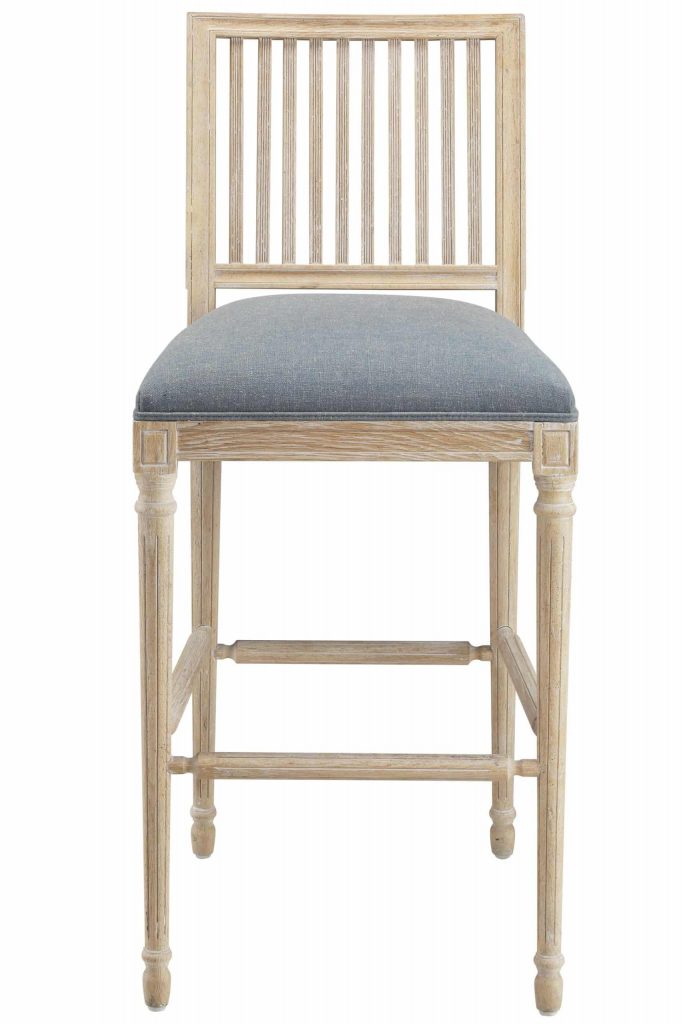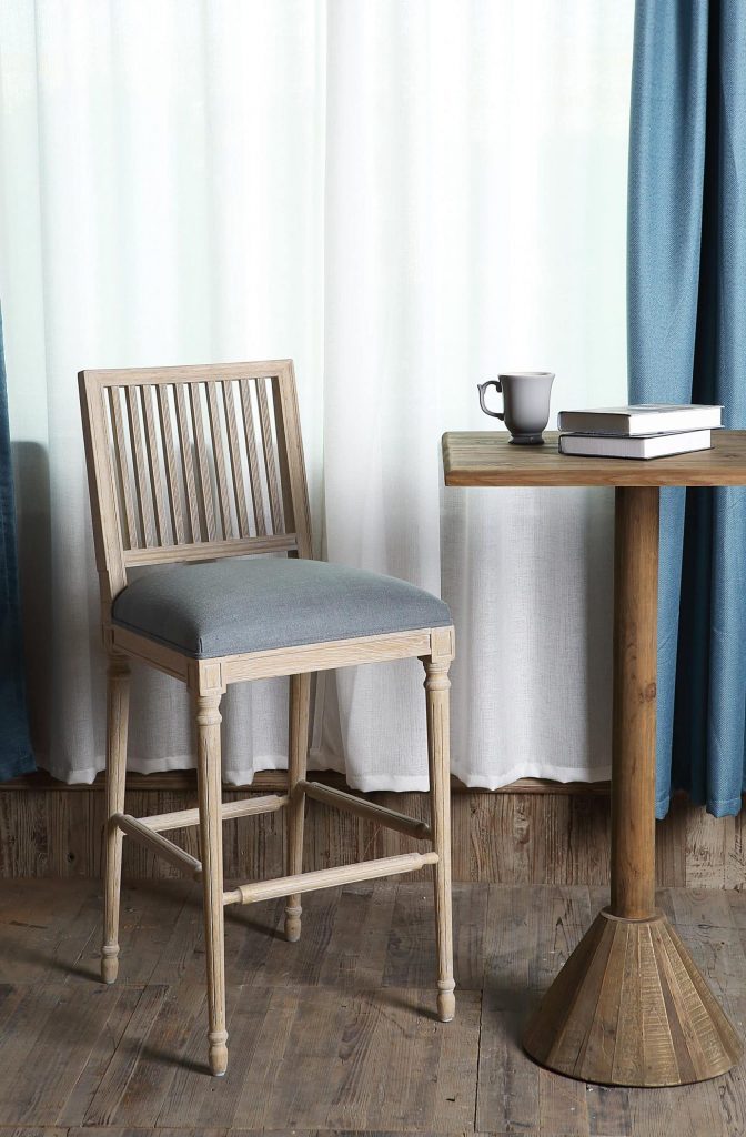 This wood bar stool is constructed with ash wood and upholstered fabric. The frame is made with the ash wood, and the seat is padded with a fabric (named at a later date). It comes fully assembled. Comes from Ningbo, China.