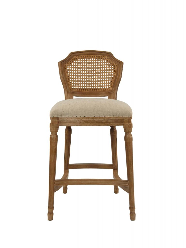 Small details add up to a dynamic design with the Wilbrandt Stationary Bar Stool. Cozy, rustic seating is as simple as swapping out your current bar stools for the Wilbrandt Stationary Bar Stool. This high back barstool is a fun addition to a home bar or kitchen island. It’s constructed with an oak wood frame and then the seat and back are lightly padded for your comfort. Tan linen upholstery is complemented by nailhead trim around the edges of the seat. The carved legs feature decorative fluting, which adds even more visual panache. Manufactured with precise attention to detail, the Wilbrandt embodies features that are most important when searching for furniture seating